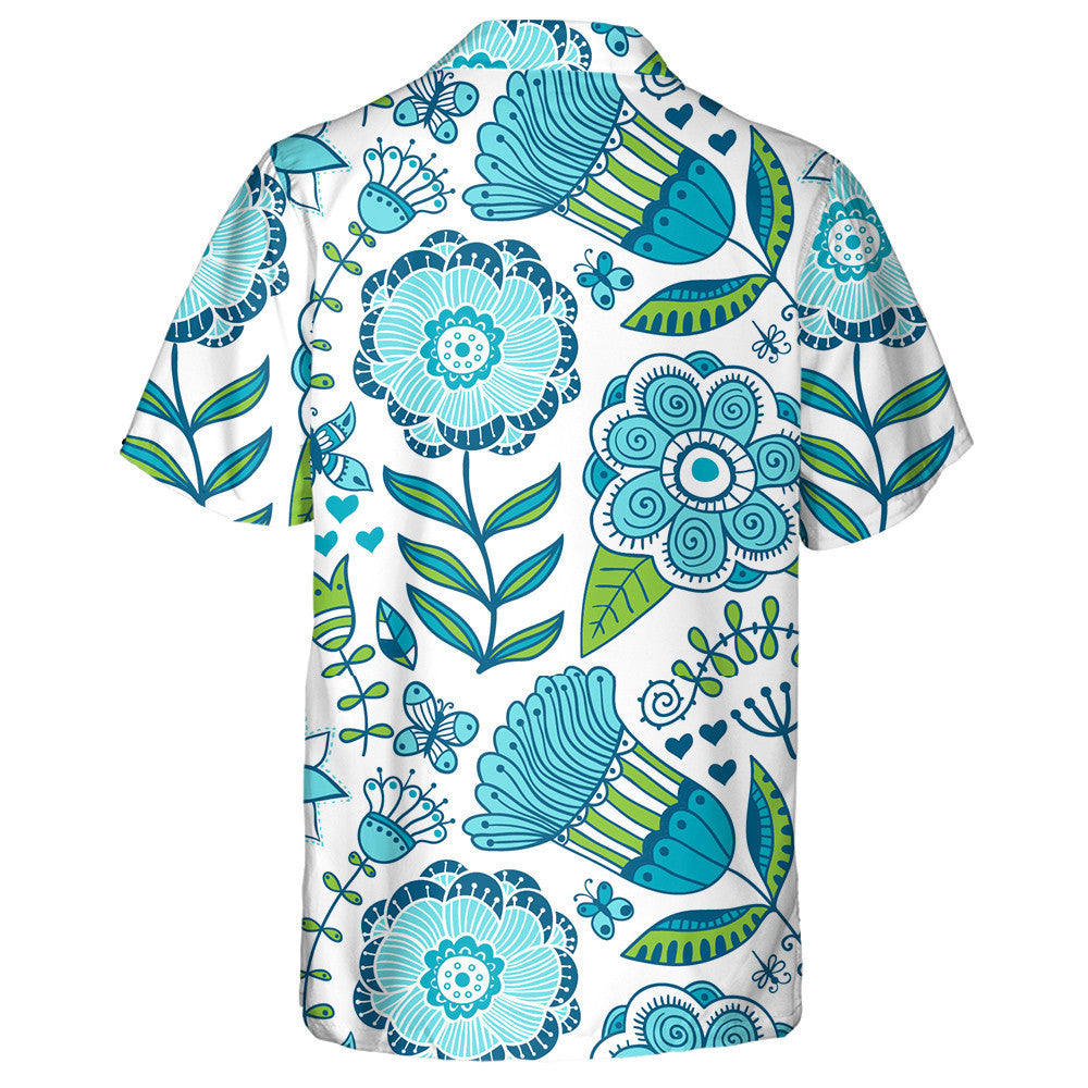 Hand Drawn Tribal Blue Butterfly And Flowers Hawaiian Shirt, Hawaiian Shirt Gift, Christmas Gift