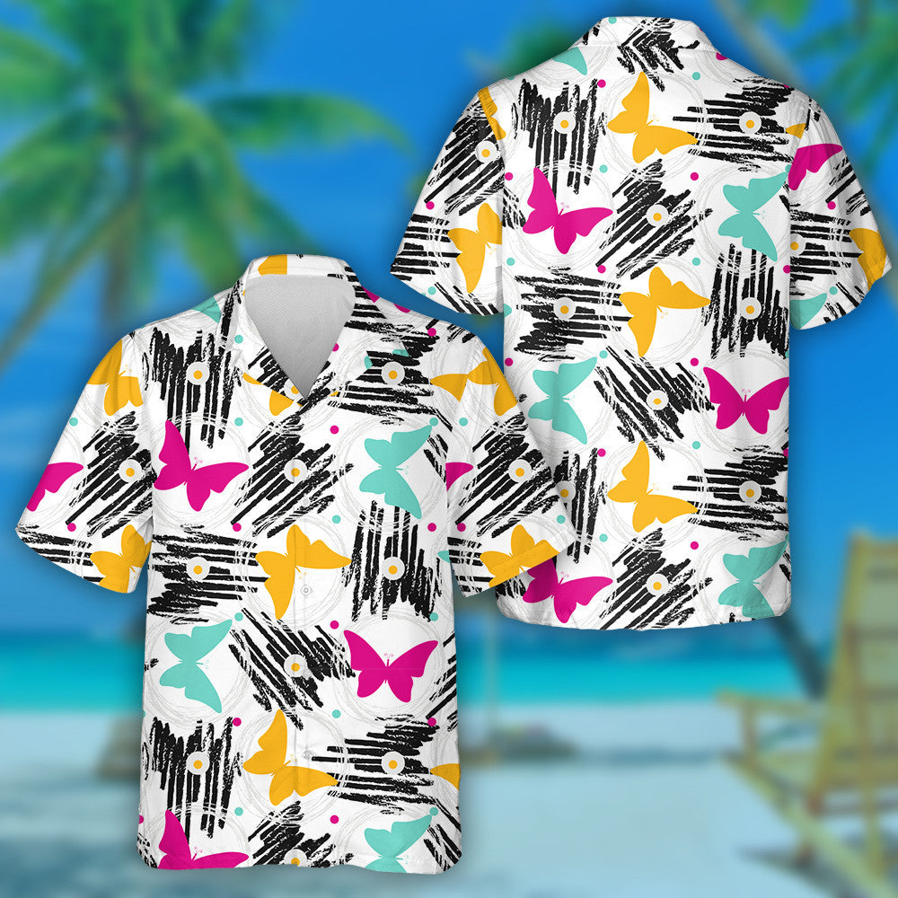 Hand Drawn With Grunge Textures And Butterflies Hawaiian Shirt, Hawaiian Shirt Gift, Christmas Gift