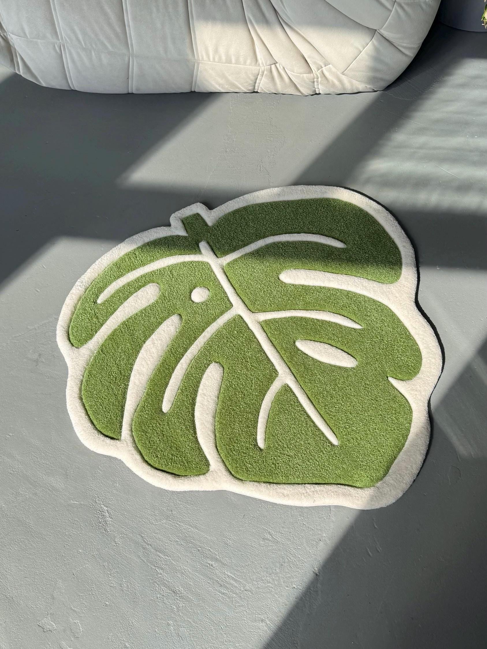 Handcrafted Monstera Leaf Rug: Green Plant Lover Gift (22”)