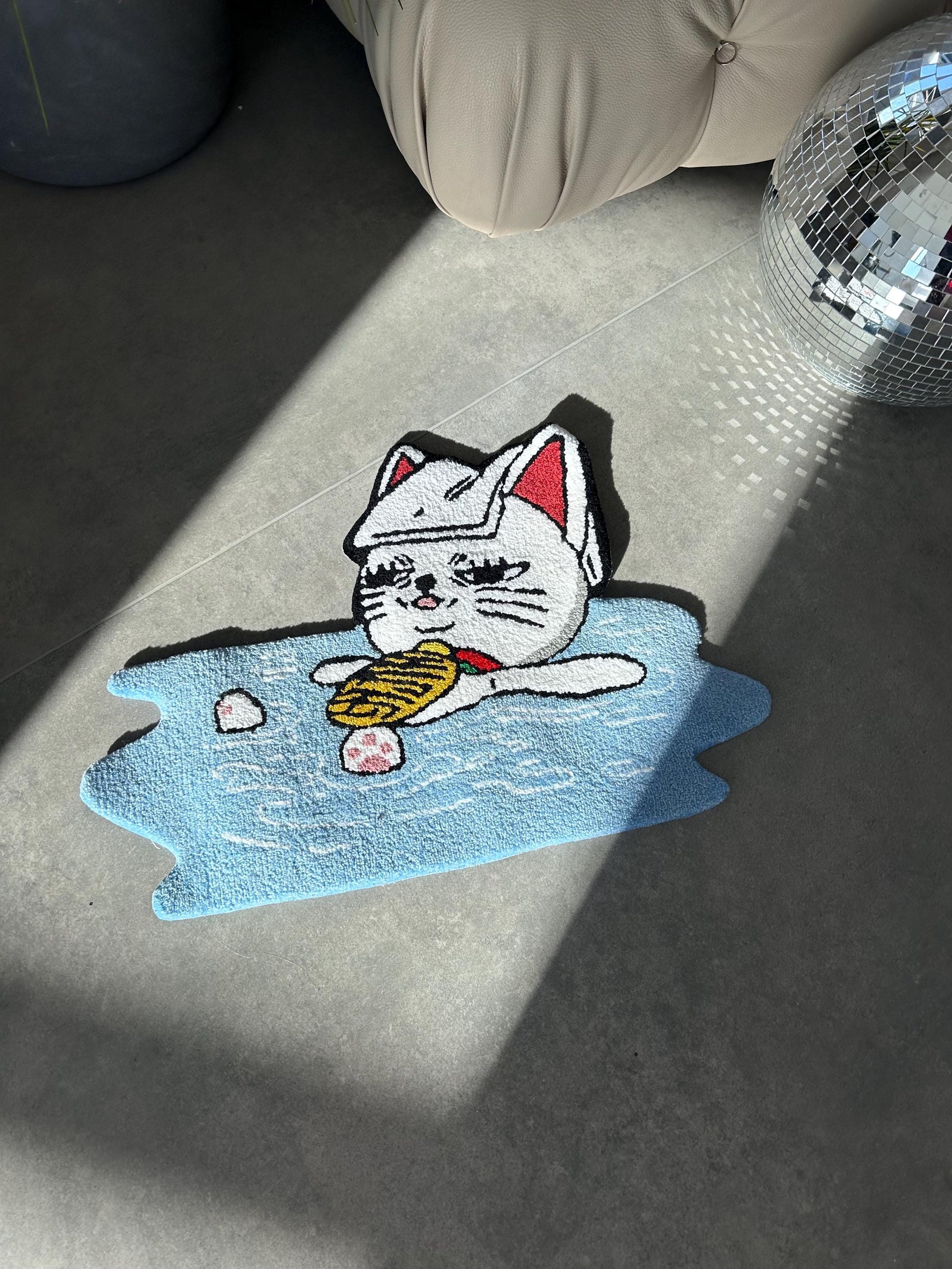 Handmade Anime Cat Rug, Custom carpet, Cozy Home Decor