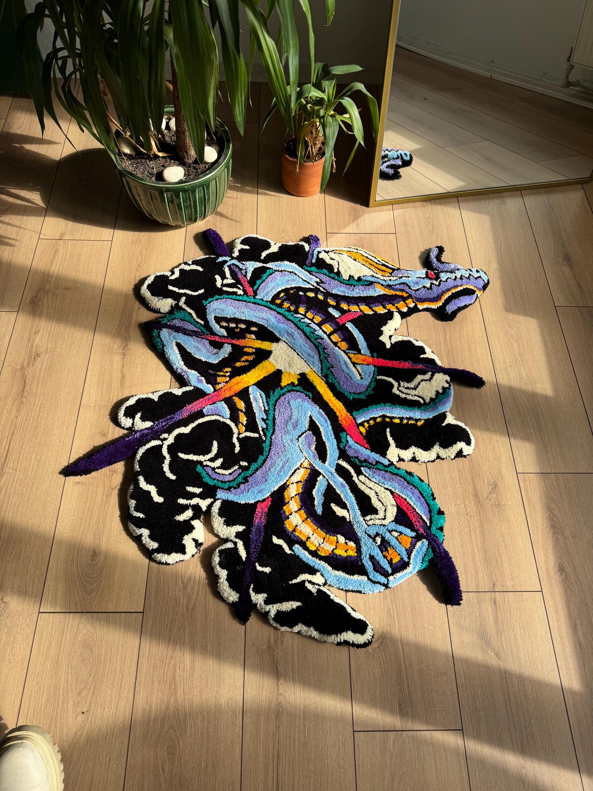 Handmade Dragon Rug - Unique Oriental Design, Mystical Dragon Carpet, Customizable Home Decor, Boho Style Rug