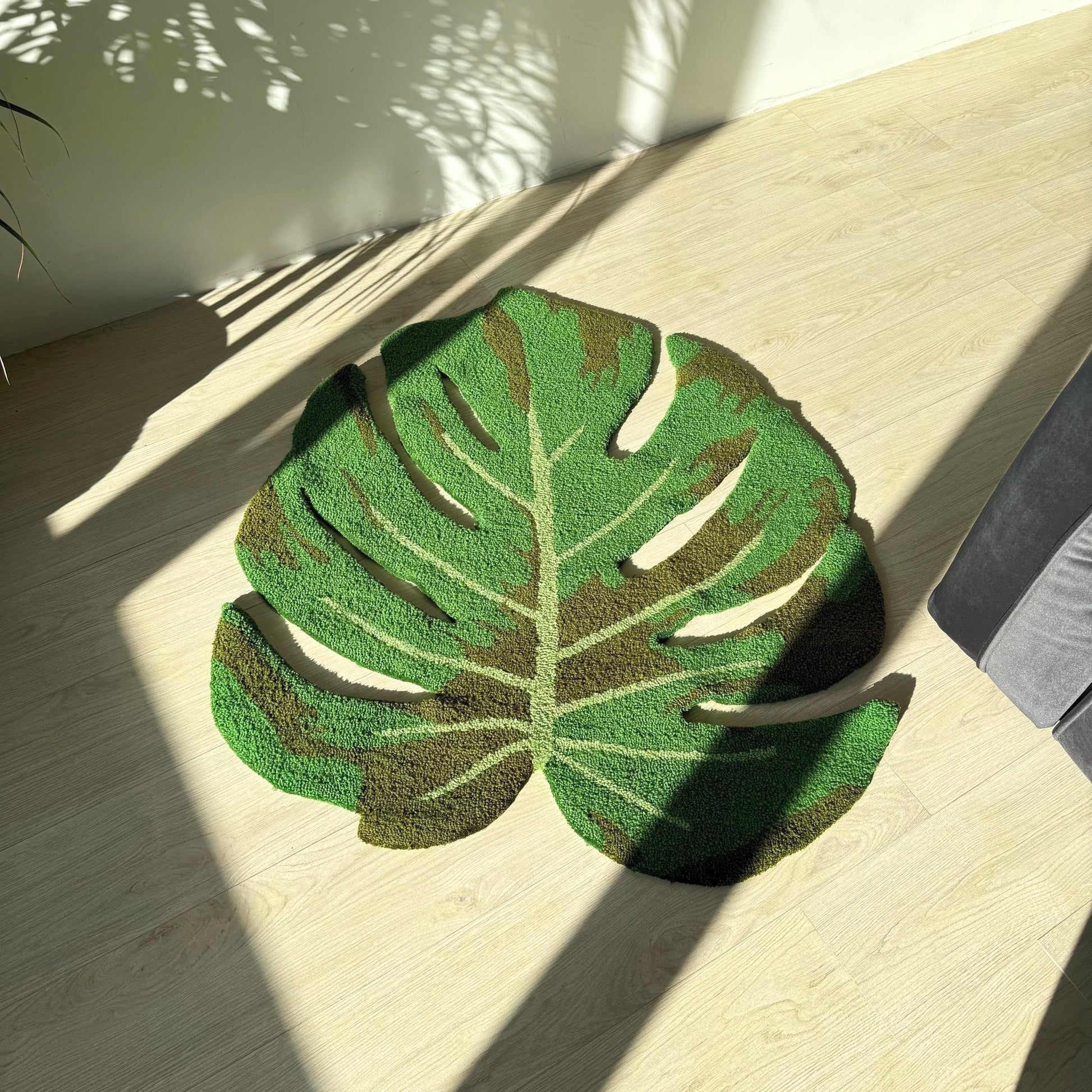 Handmade Monstera Leaf Tufted Rug: Tropical Plant Decor