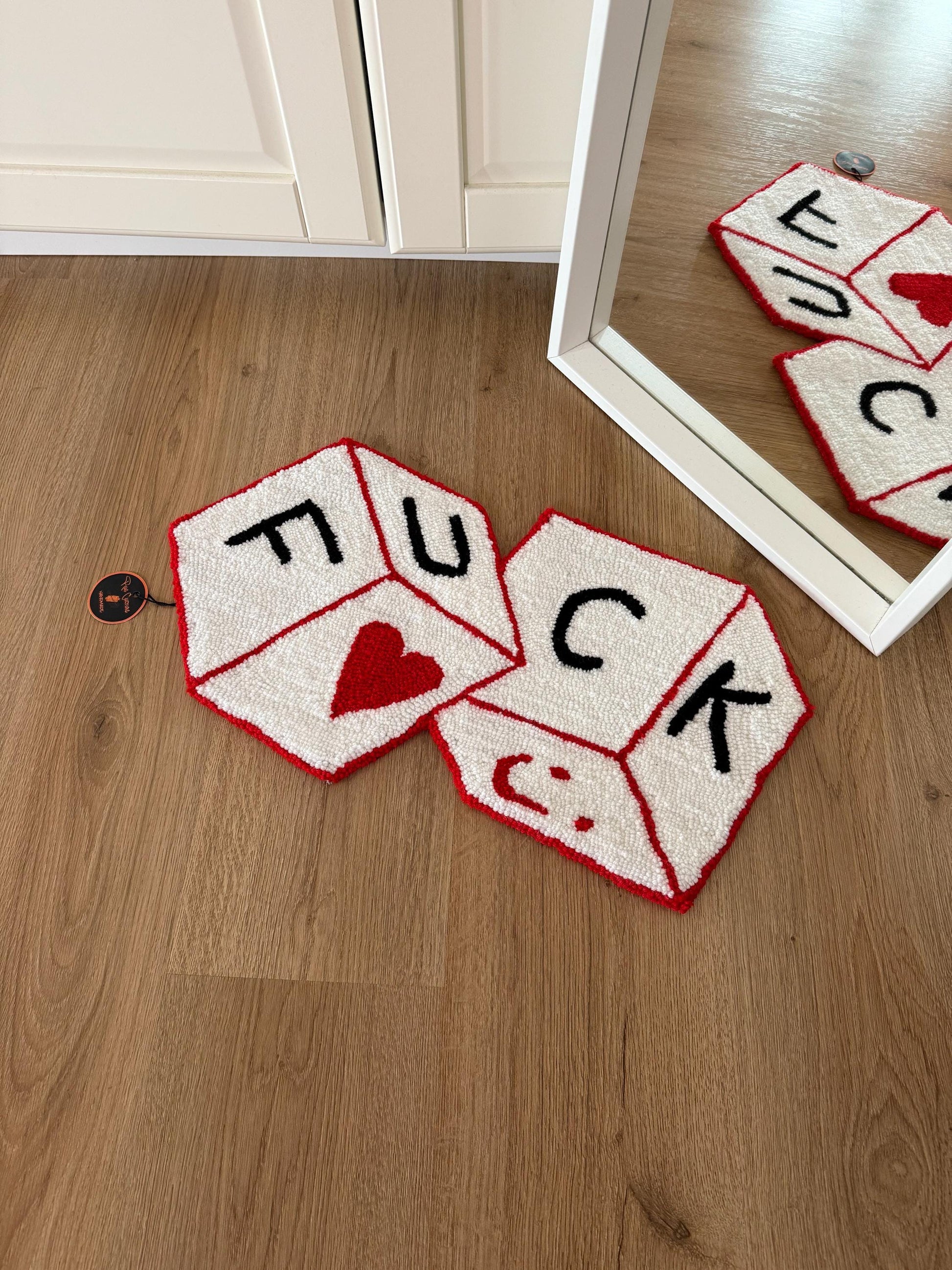 Handmade Tufted Rug: Novelty Dice Design, Colorful Accent Rug (28x55cm)