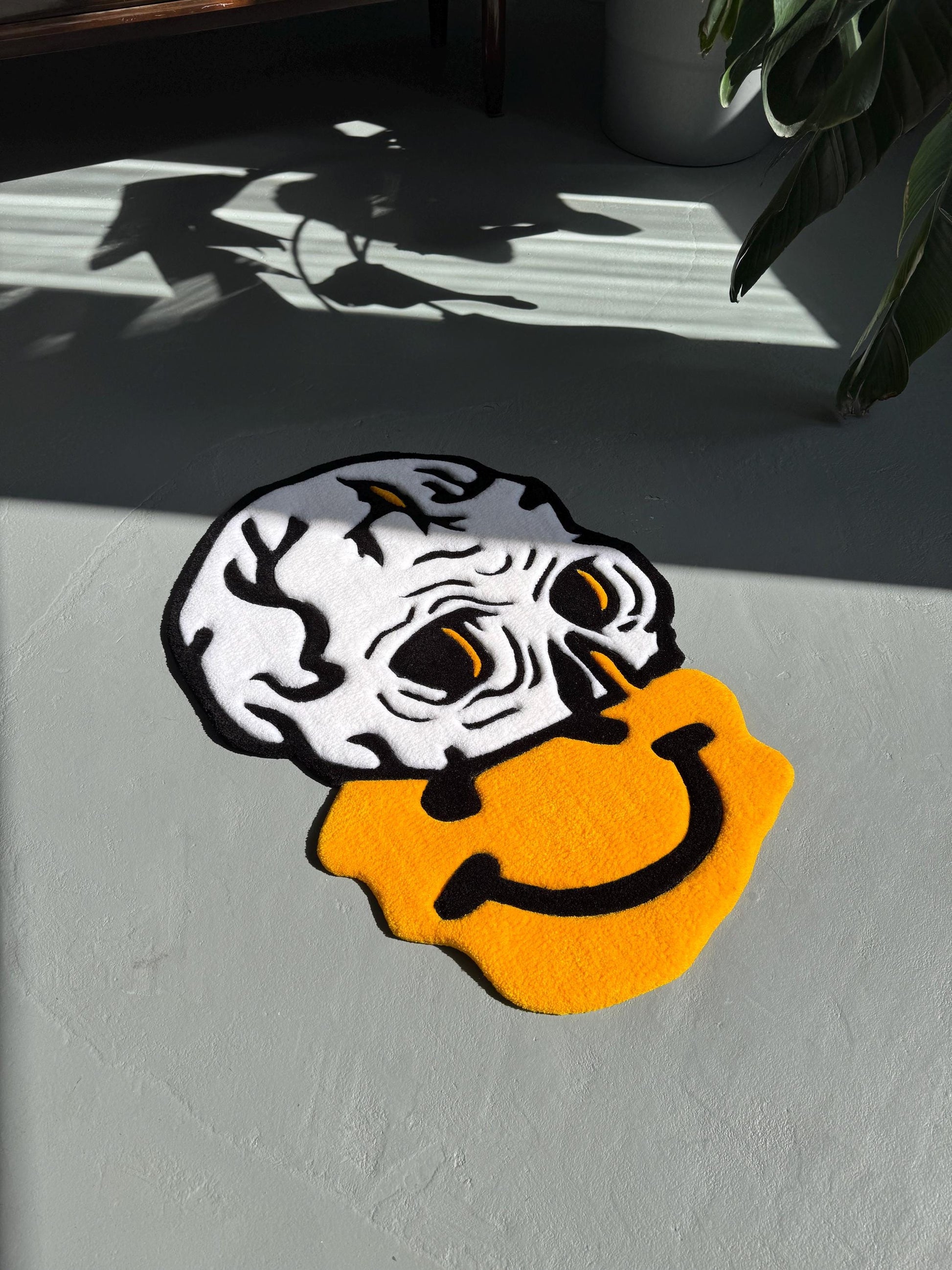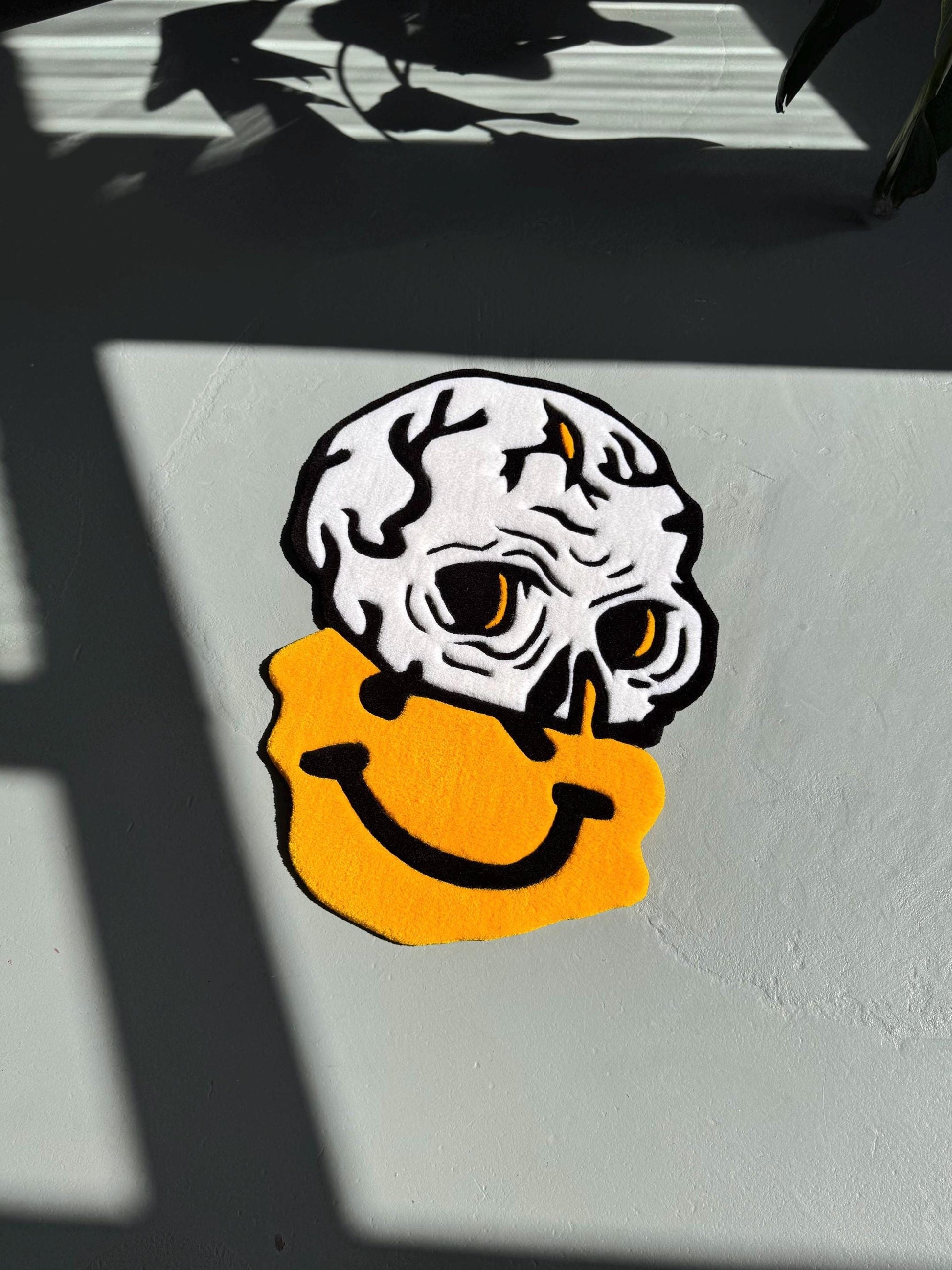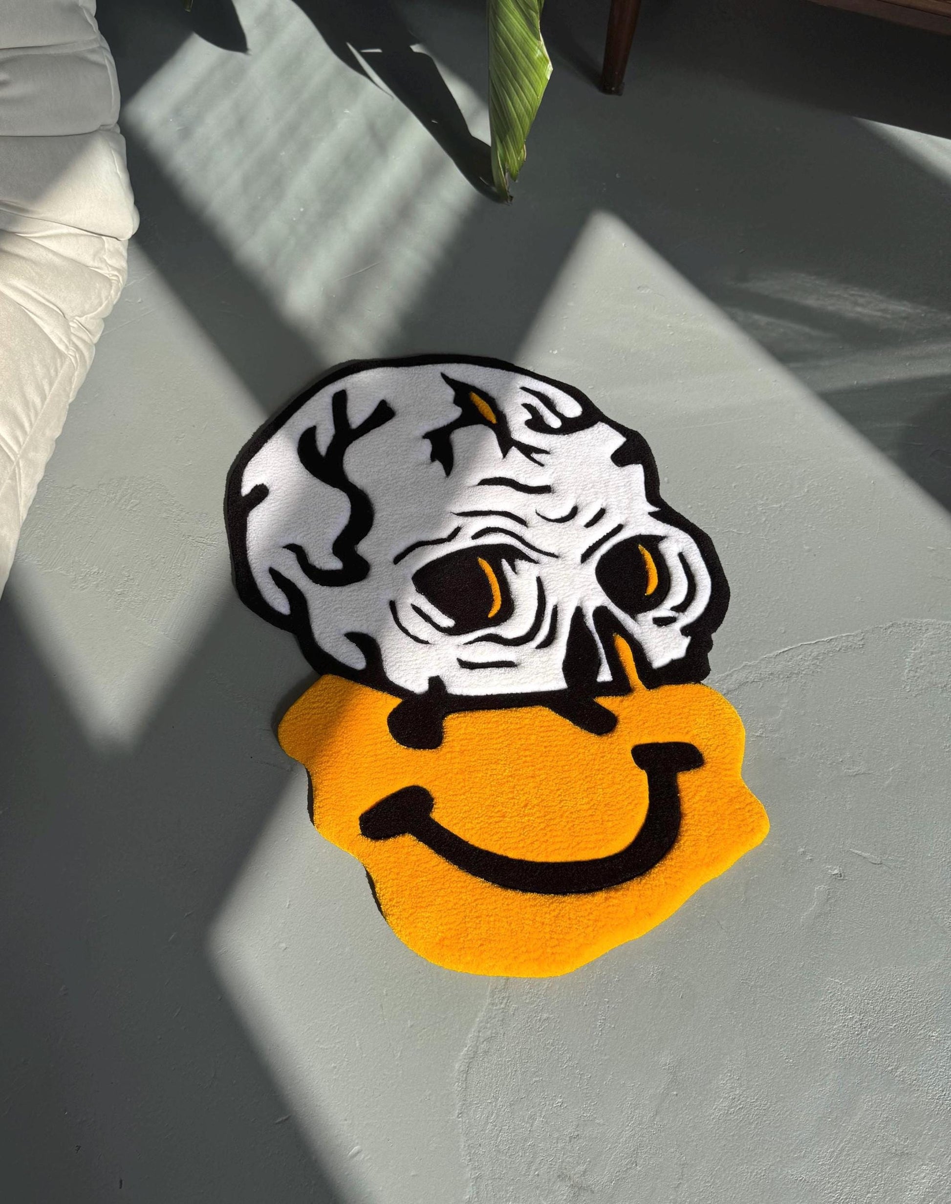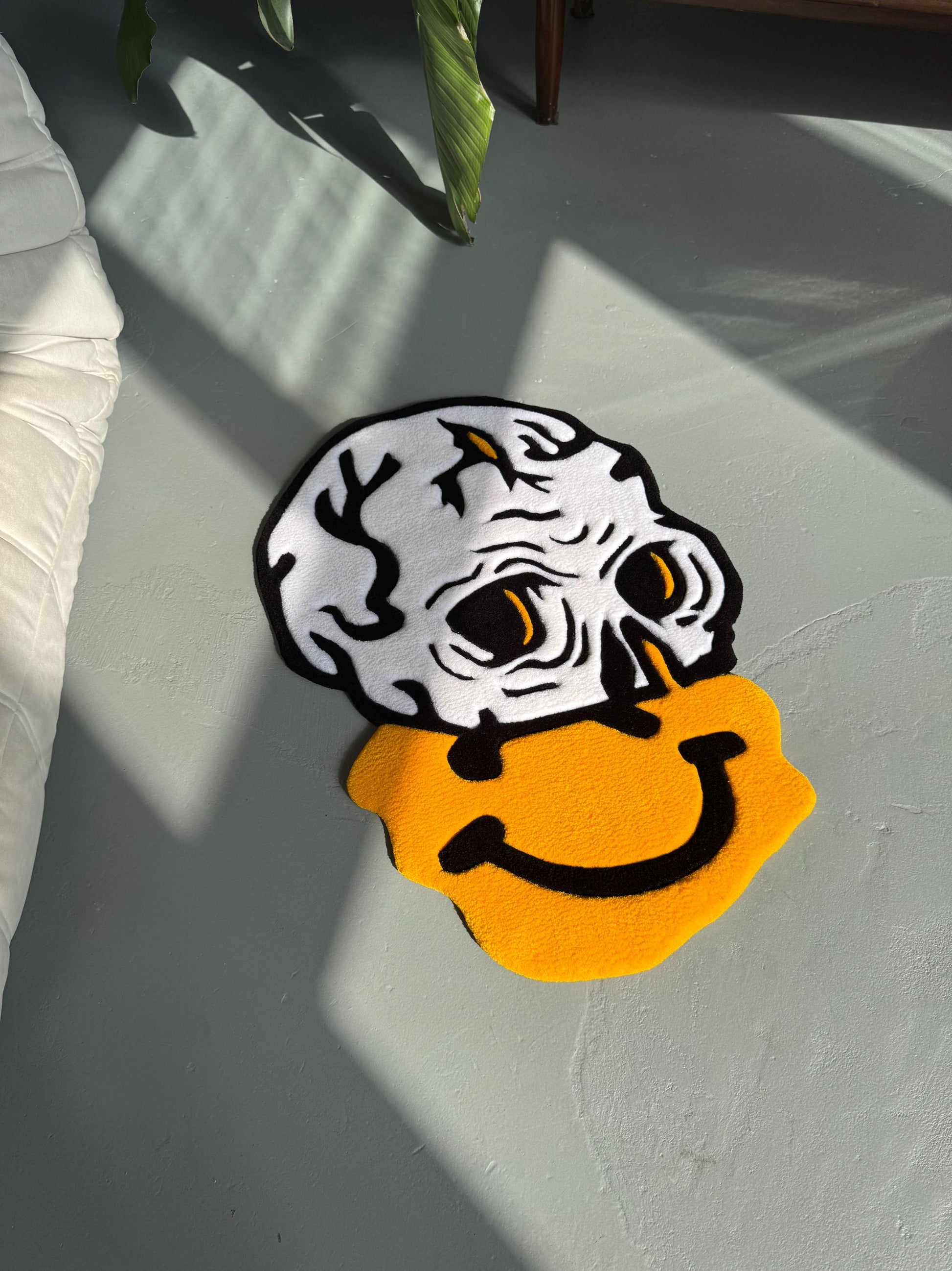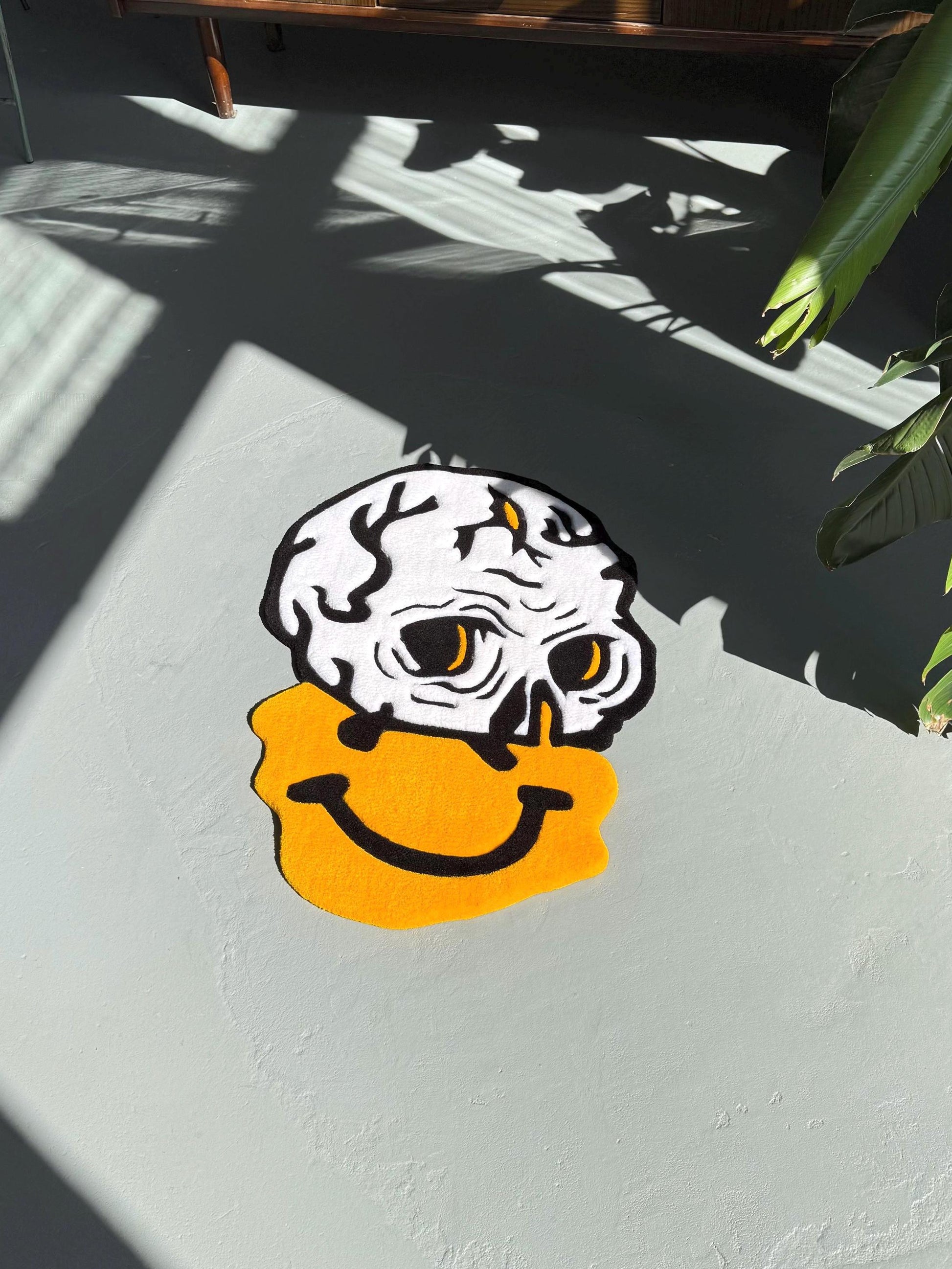 Handmade Tufted Skull Rug: Trippy Graphic Face Mat