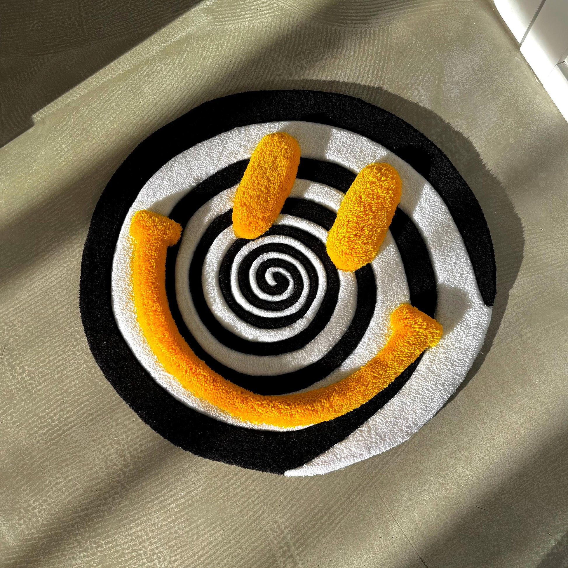 Handmade Tufted Smiley Face Rug: Hypnotic Spiral Design