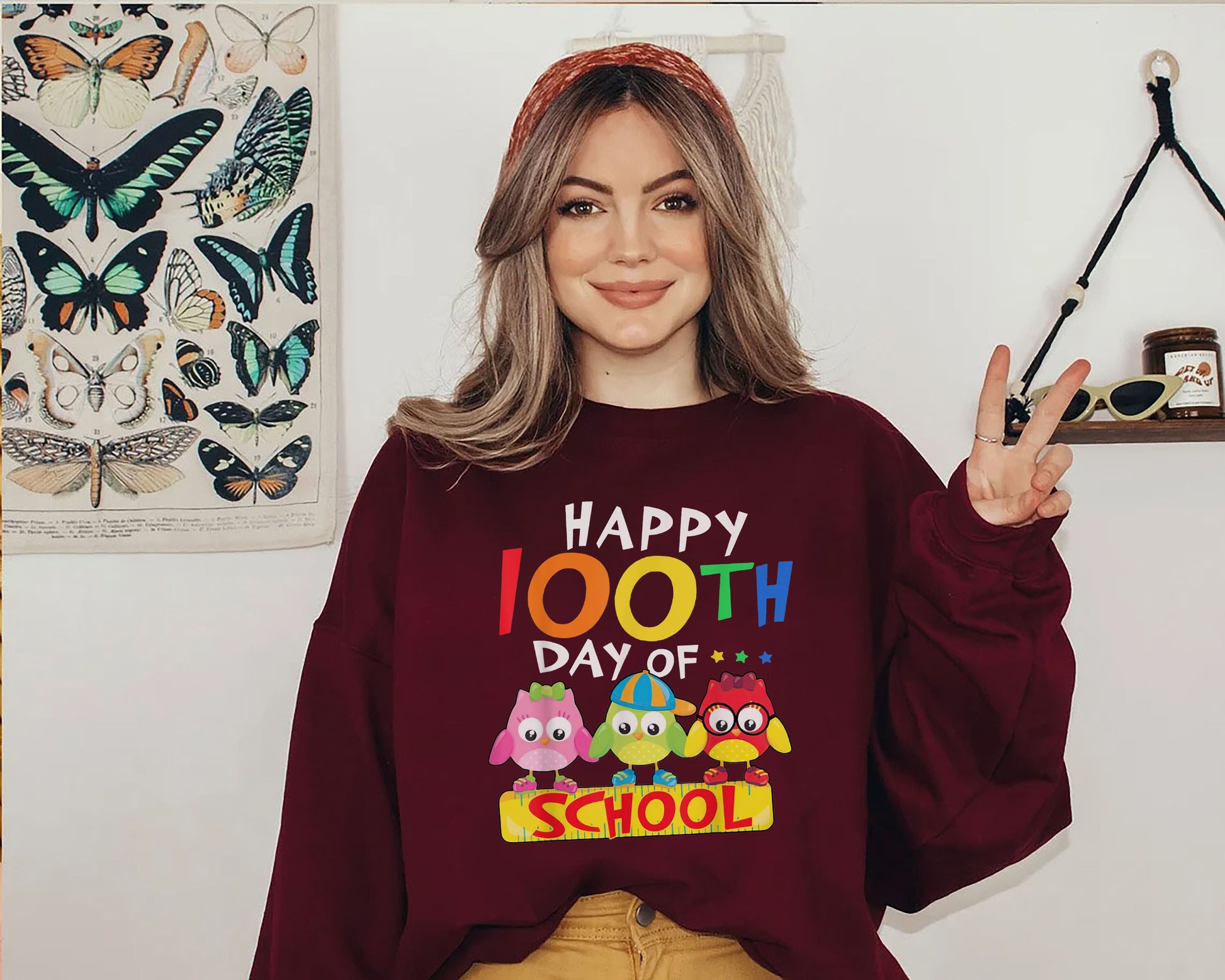 Happy 100th Day Of School Owl Kids 100 Days Teacher T-Shirt