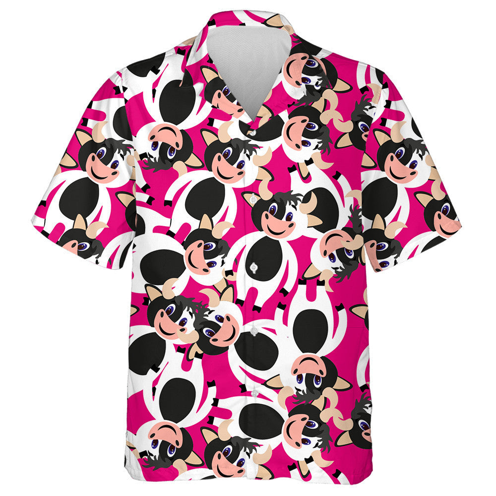 Happy Cow On Blue Background Doodle Style Hawaiian Shirt, Hawaiian Shirt Gift, Christmas Gift