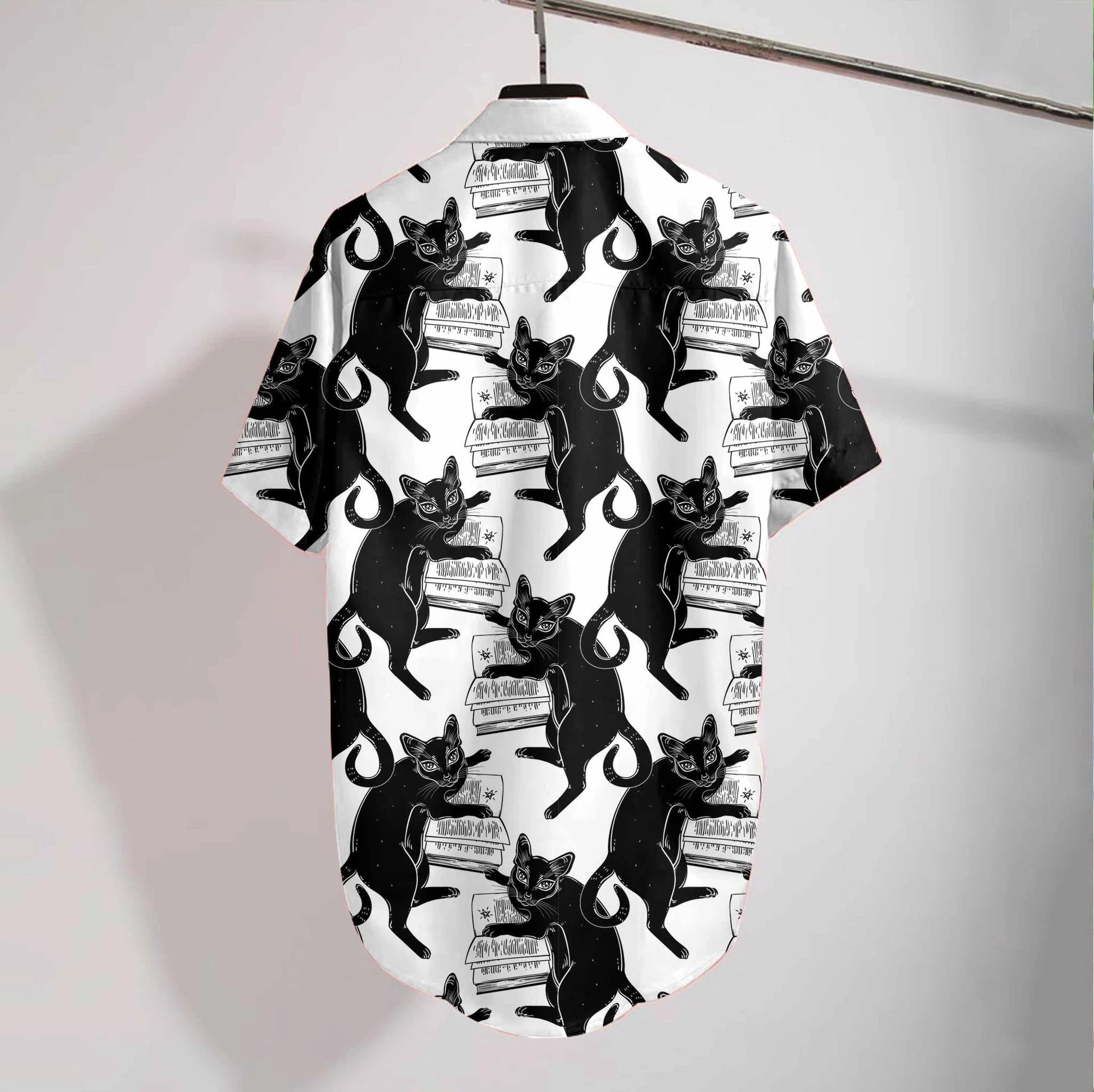 Happy Halloween Spooky Black Cat Loves Book Hawaiian Shirt, Hawaiian Shirt Gift, Christmas Gift
