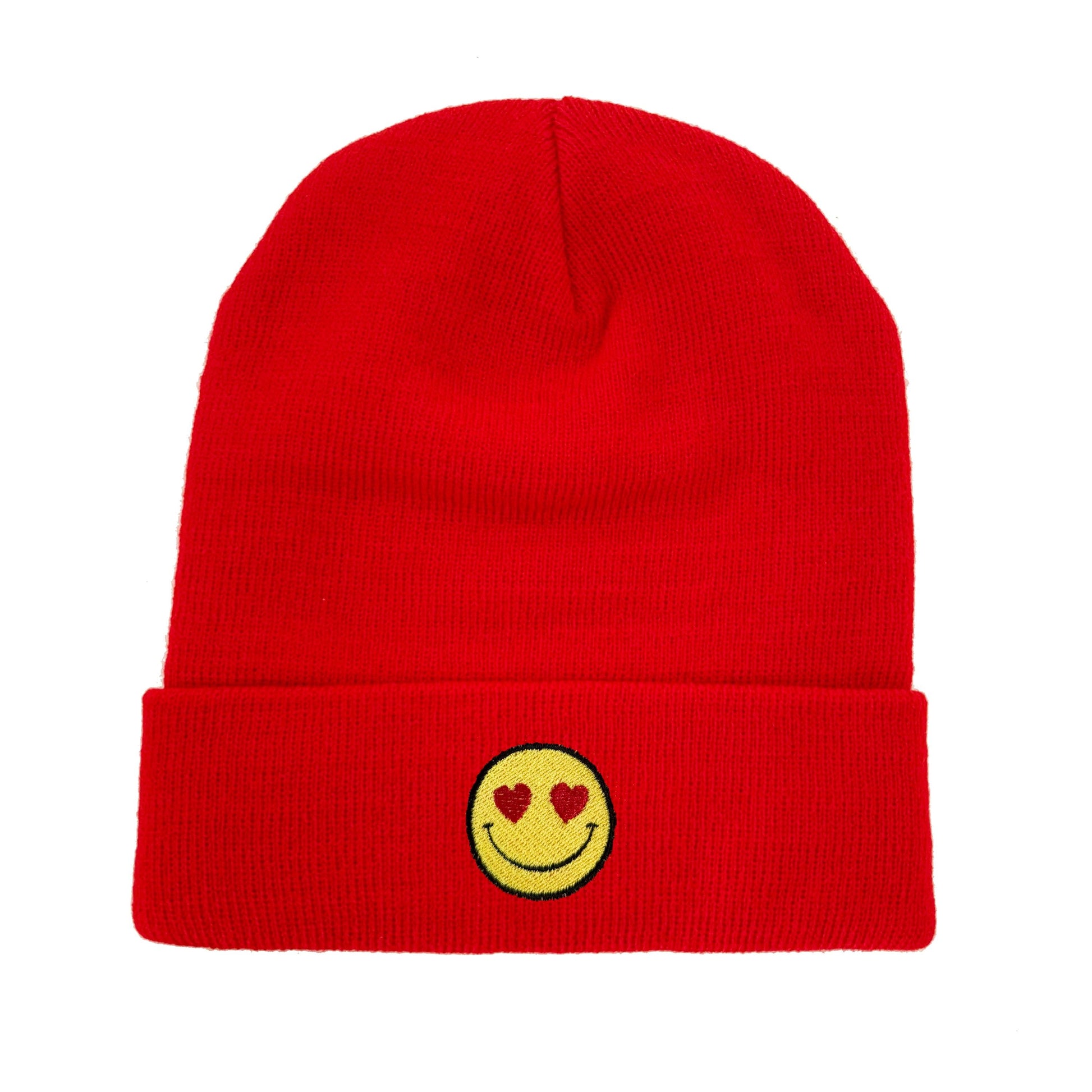 Heart Eyes Smiley Face Embroidered Beanie Smile Beanie Winter Beanie