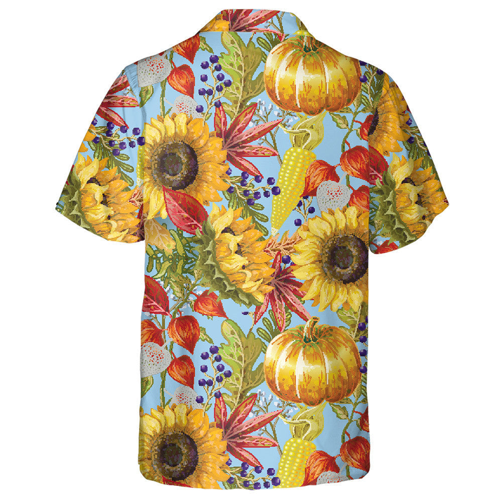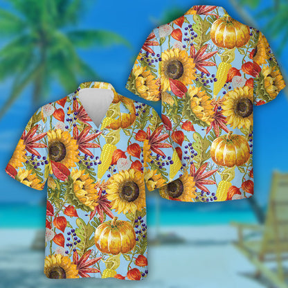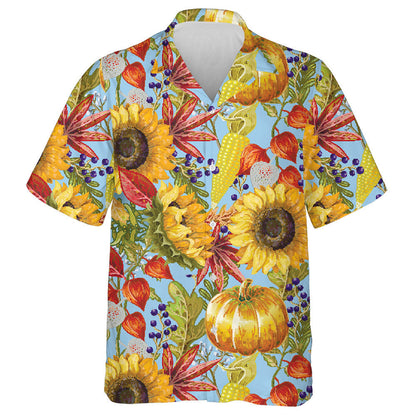 Hello Autumn Season Elements With Pumkin Sunflower And Leaves Hawaiian Shirt, Hawaiian Shirt Gift, Christmas Gift