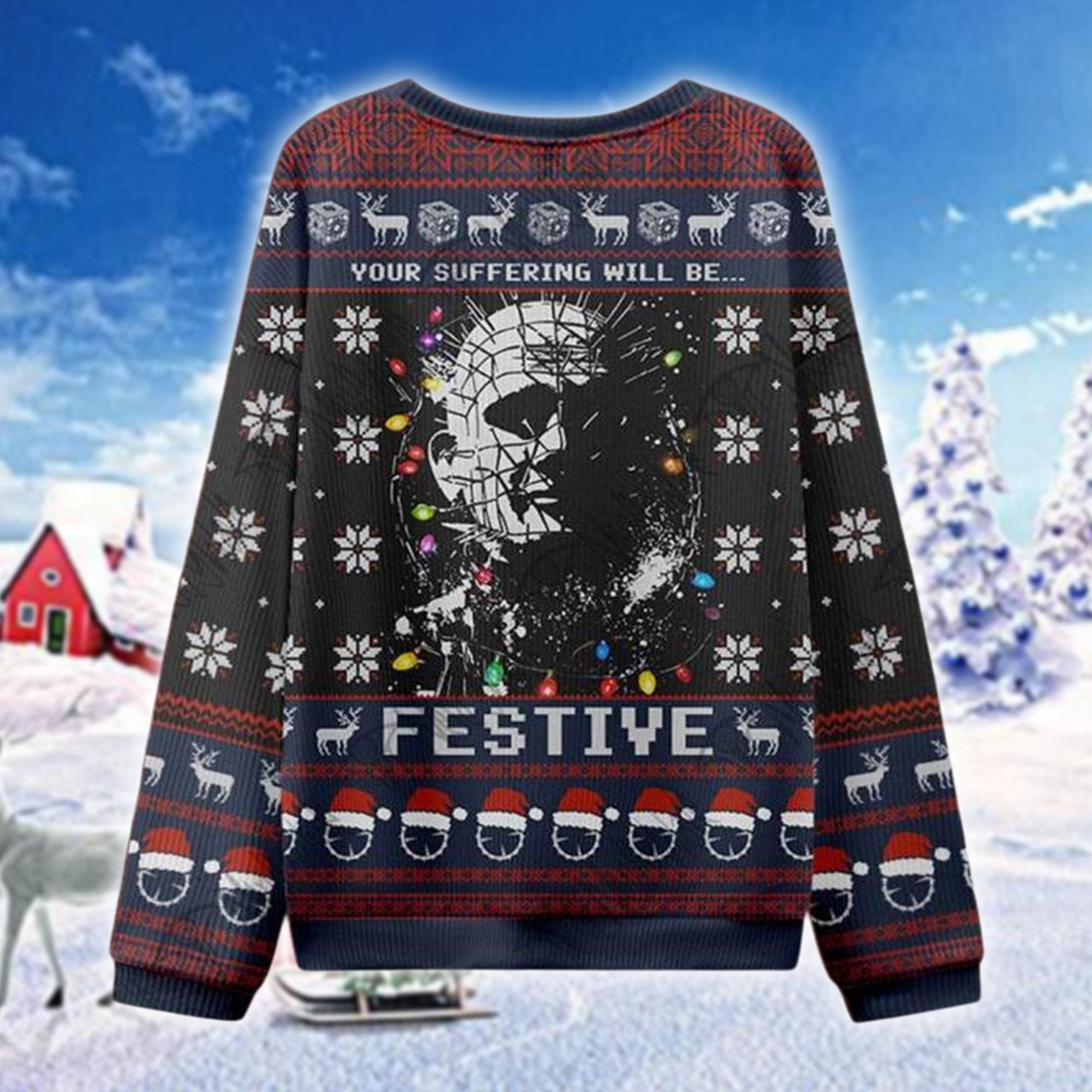 Hellraiser Ugly Christmas Sweater, Horror Movie Festive Jumper, Pinhead Holiday Sweatshirt, Gothic Xmas Party Gift for Him or Her