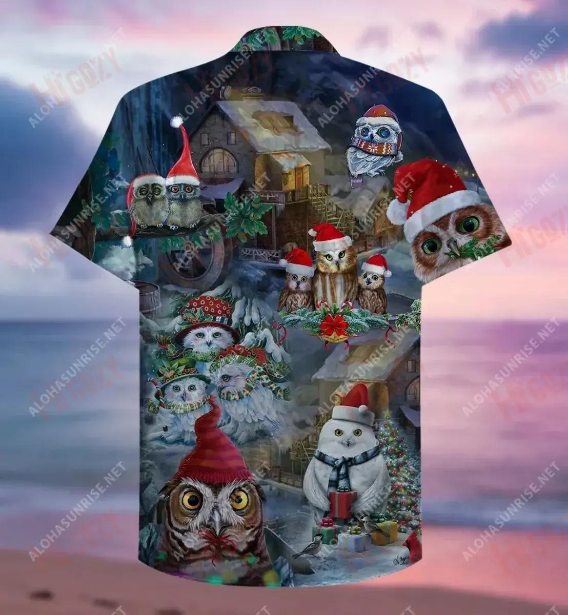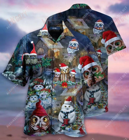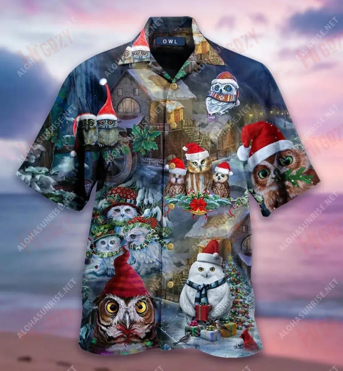 Here Comes The Night Owl Christmas Short Hawaiian Shirt Vacation Hawaiian T Shirts Custom Hawaiian Shirts Hawaiian Shirt Pattern, Hawaiian Shirt Gift, Christmas Gift