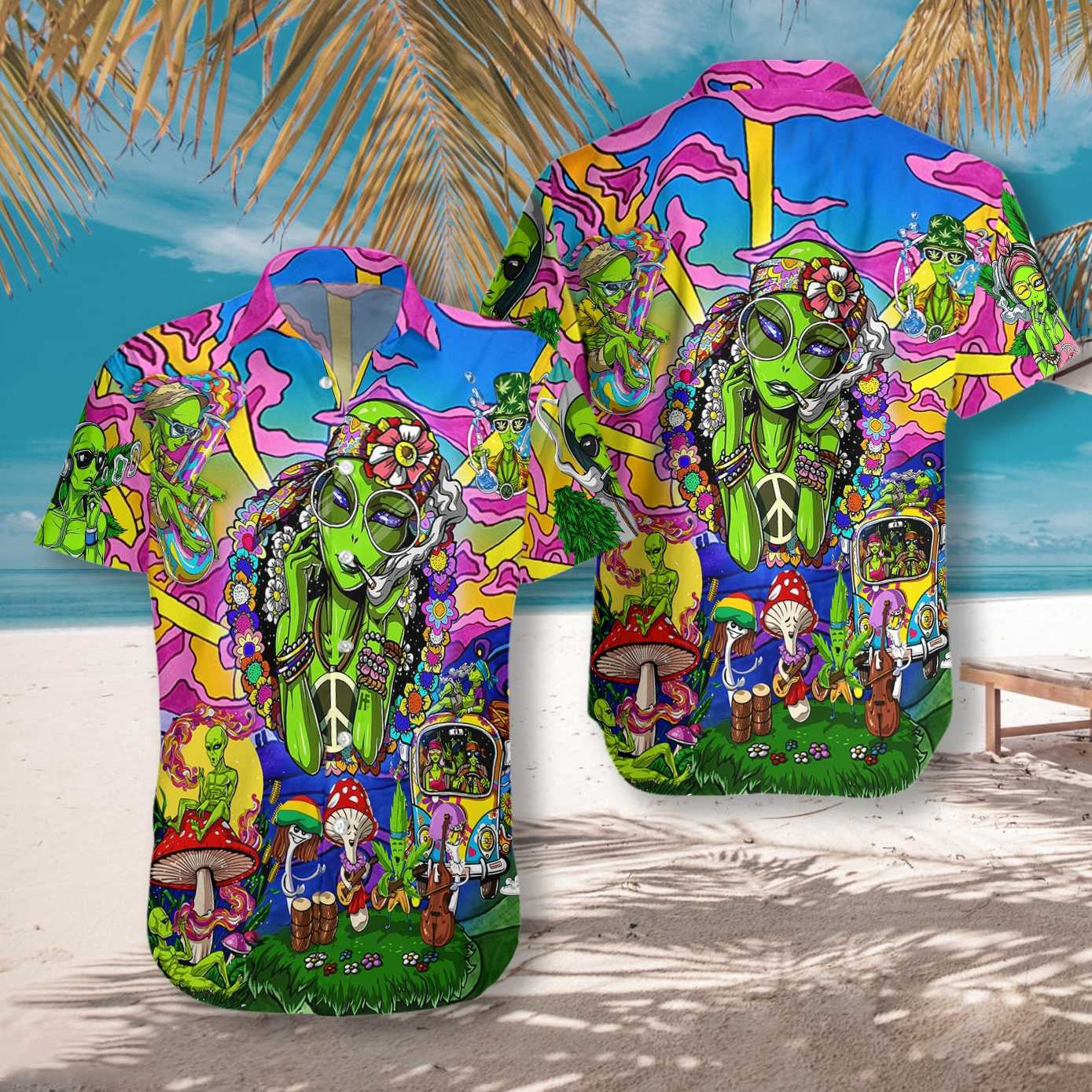Hippie Alien Colorful Design Impressive Pattern Hawaiian Shirt,Hawaiian Shirt Gift, Christmas Gift