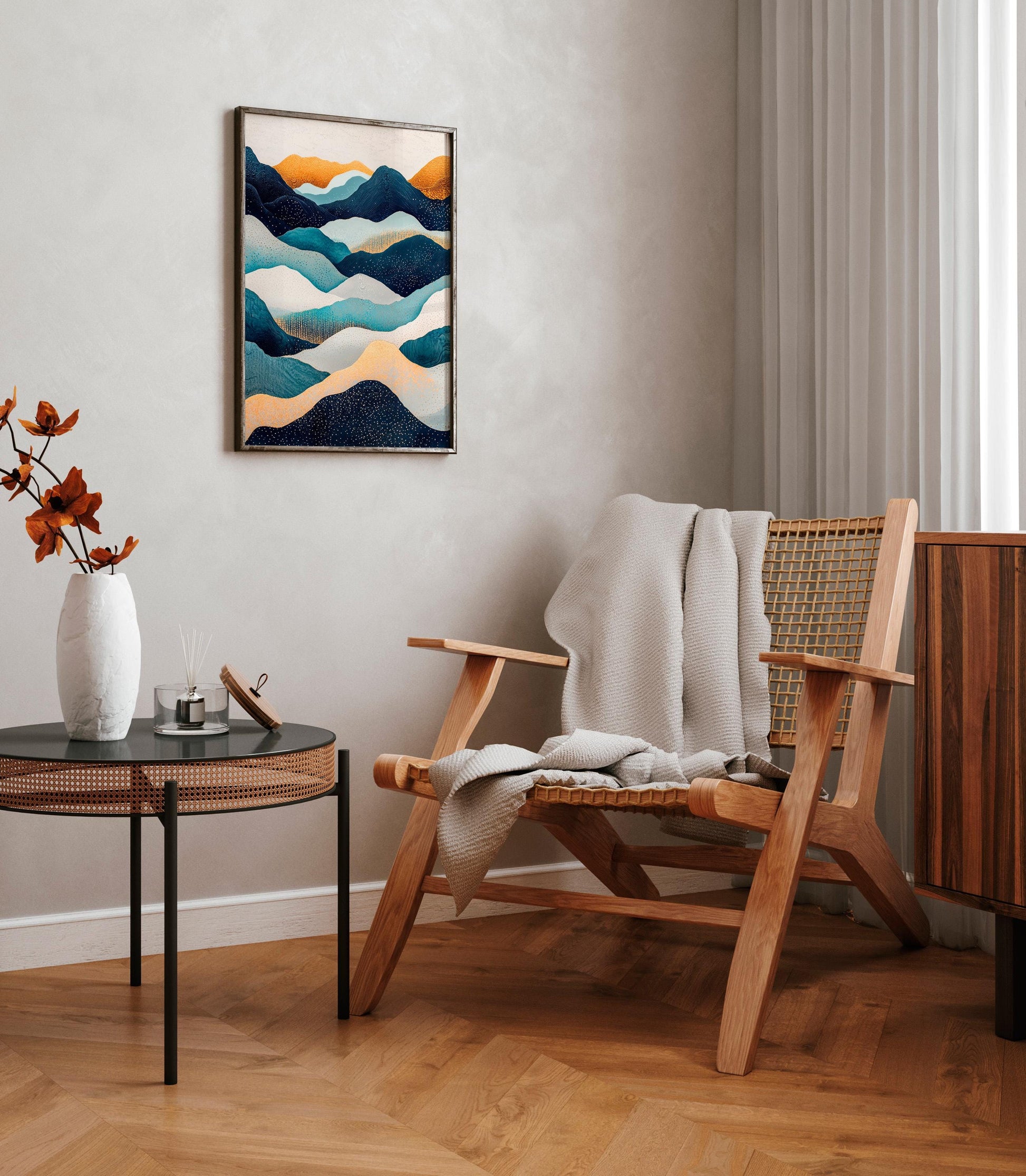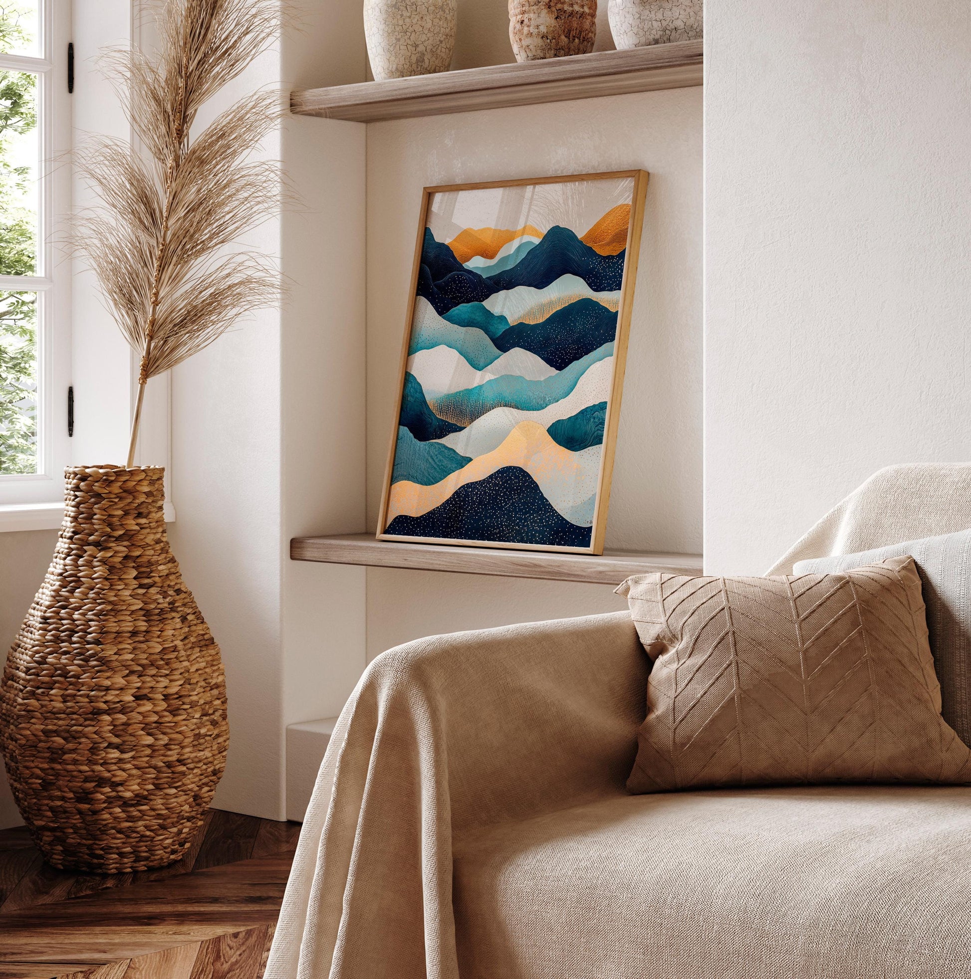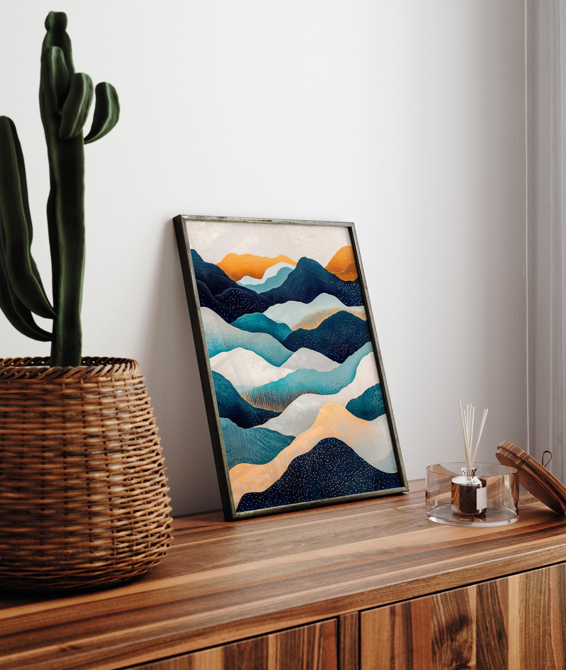 Hokusai Ukiyo-e Japanese mountains wall art, Japandi home decor, Landscape poster, Blue green print