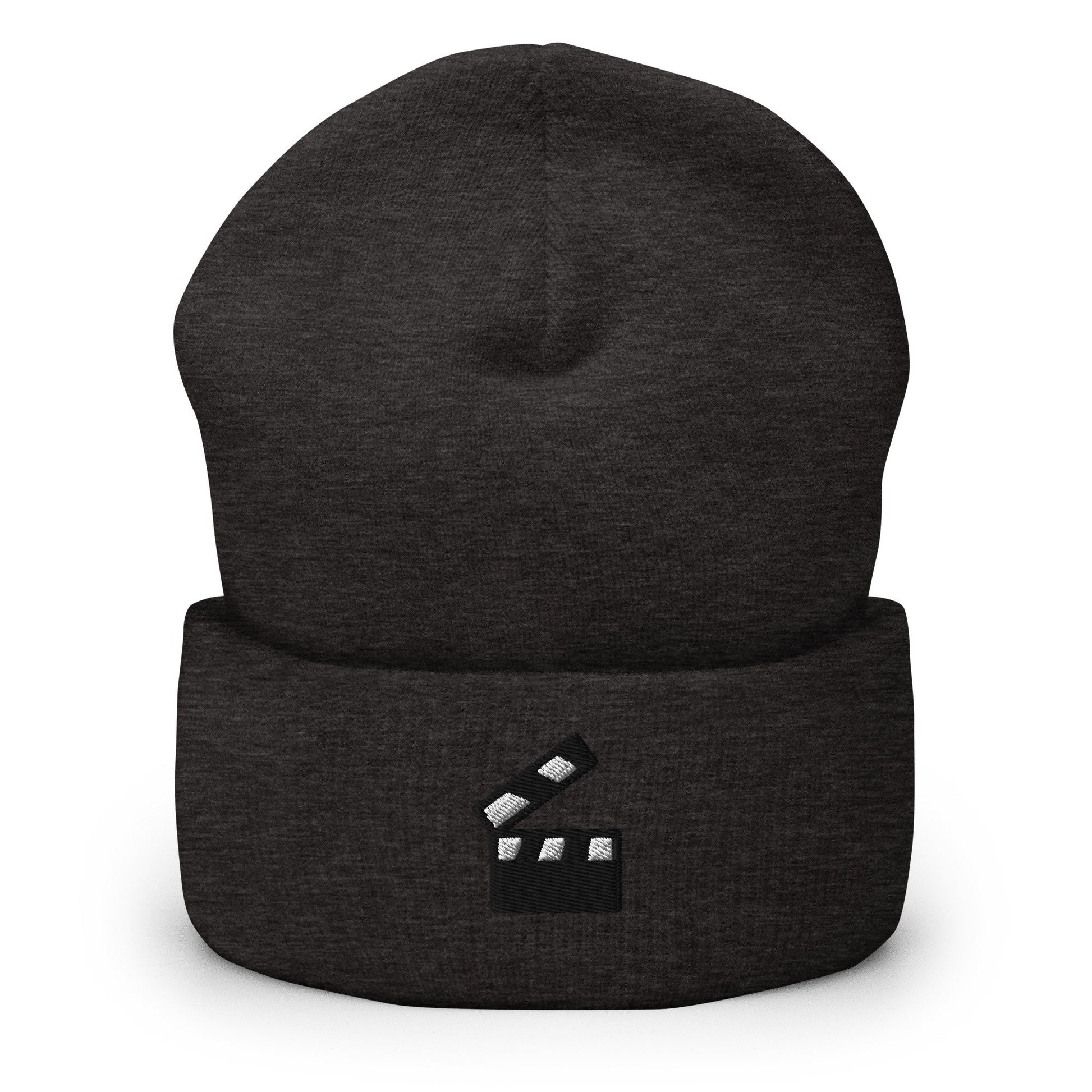 Hollywood Director Actor Film Major Filmmaker Clapper Embroidered Beanie, Handmade Cuffed Knit Unisex Slouchy Adult Winter Hat Cap Gift