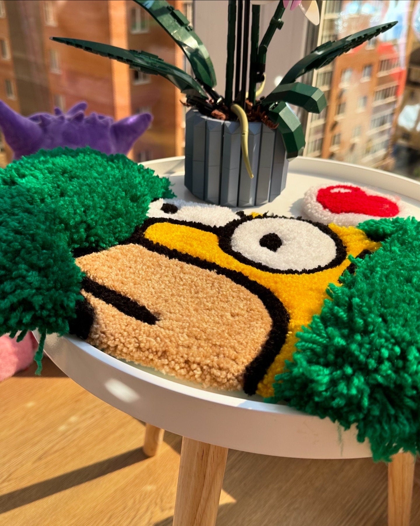 Homer in the Bush Tufted Rug – Custom Handmade Puffy Cartoon Carpet, Funny Room Decor Rug Inspired by Pop Culture Character 3D Soft Art Gift