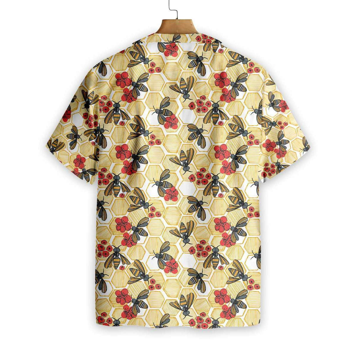 Honey Bee Hexagon On Cream Background Pattern Hawaiian Shirt, Hawaiian Shirt Gift, Christmas Gift