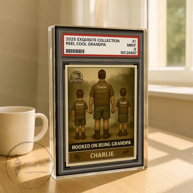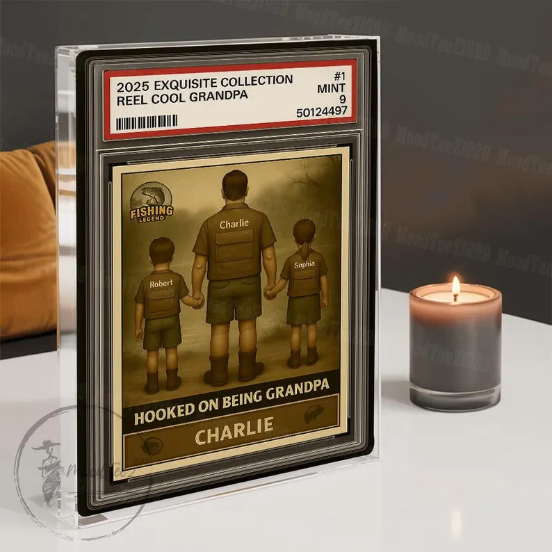 Hooked the Best Dad Fishing Custom Figure, Custom Acrylic Block Plaque For Dad, Father's Day Gifts, Grandpa Fishing Gifts, Gift For Grandpa