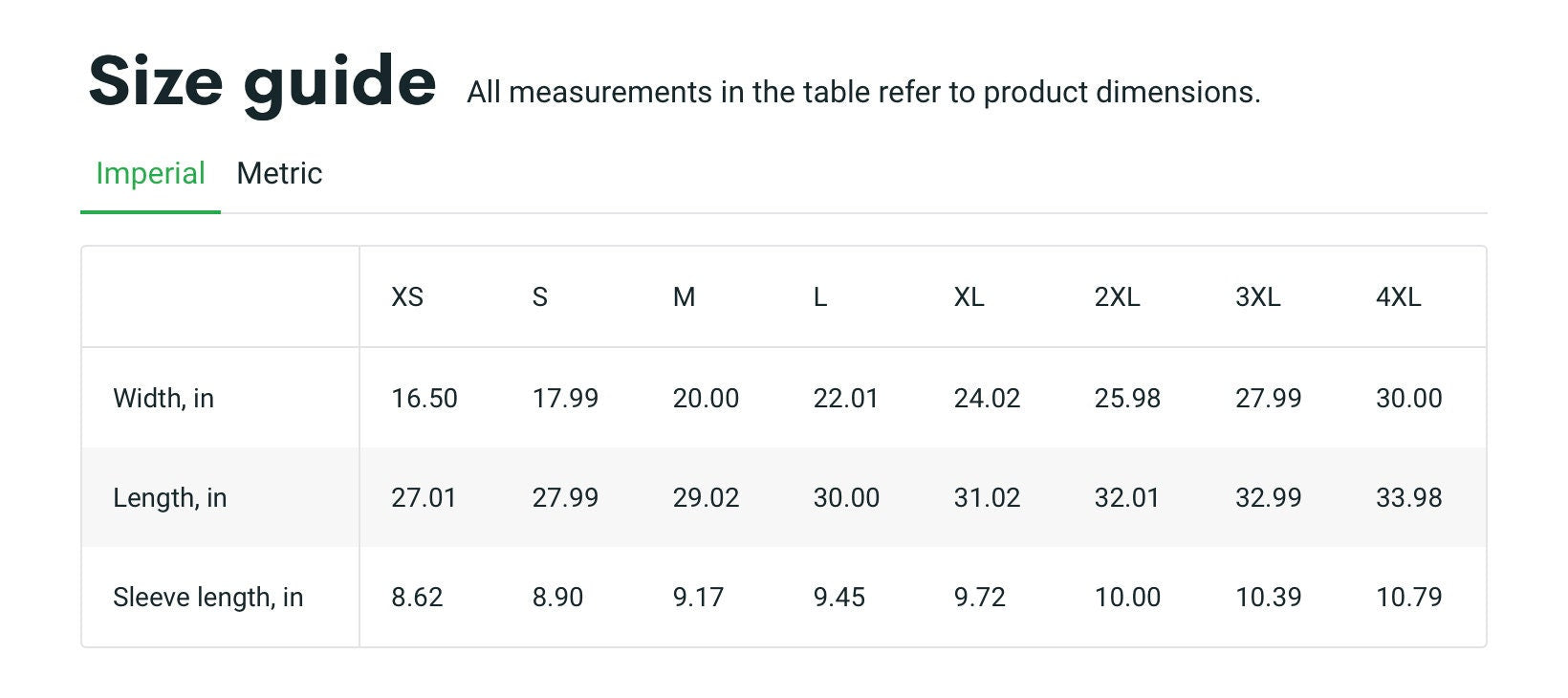 Size Chart (T-Shirt, inches)
