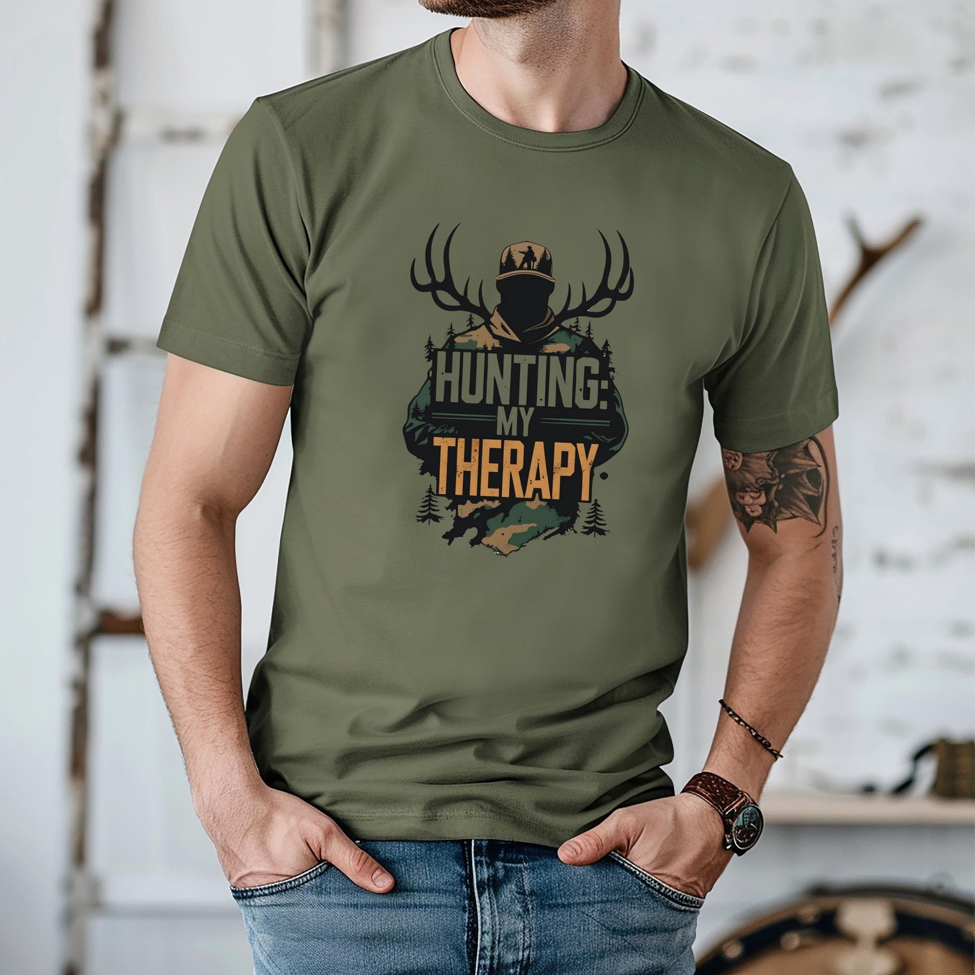 Hunting Therapy Shirt: Men's Outdoor Graphic Tee - Bella Canvas 3001