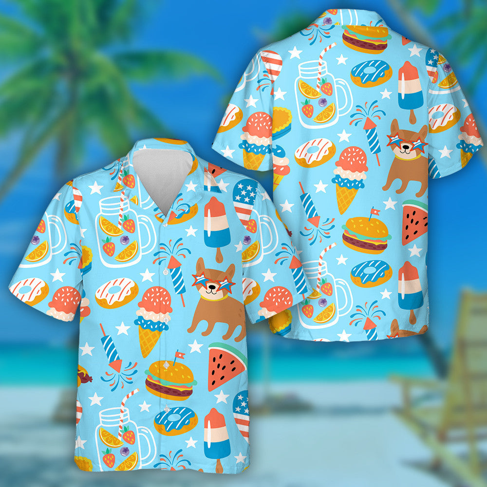 Independence Day And Cute Dog On Blue Hawaiian Shirt, Hawaiian Shirt Gift, Christmas Gift