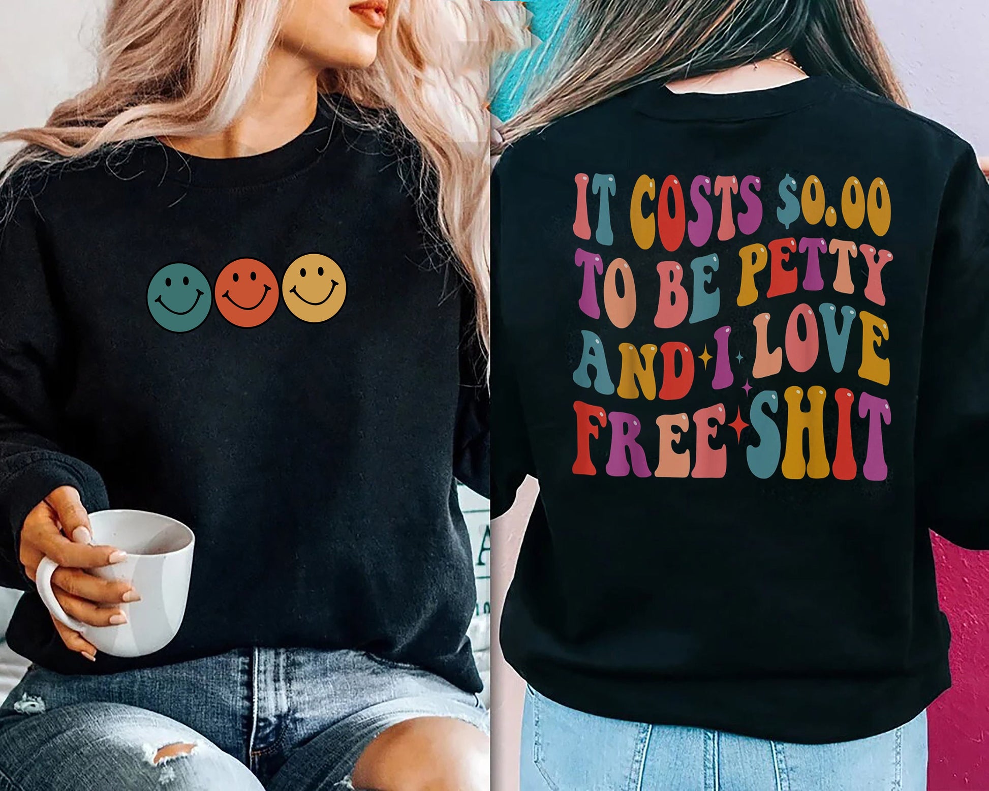 It Costs 000 To Be Petty and I Love Free Shit Shirt, Sarcastic Petty Shirt, Bad Ass Sweatshirt, Funny Friend Shirt, Trendy Adult Humor gift
