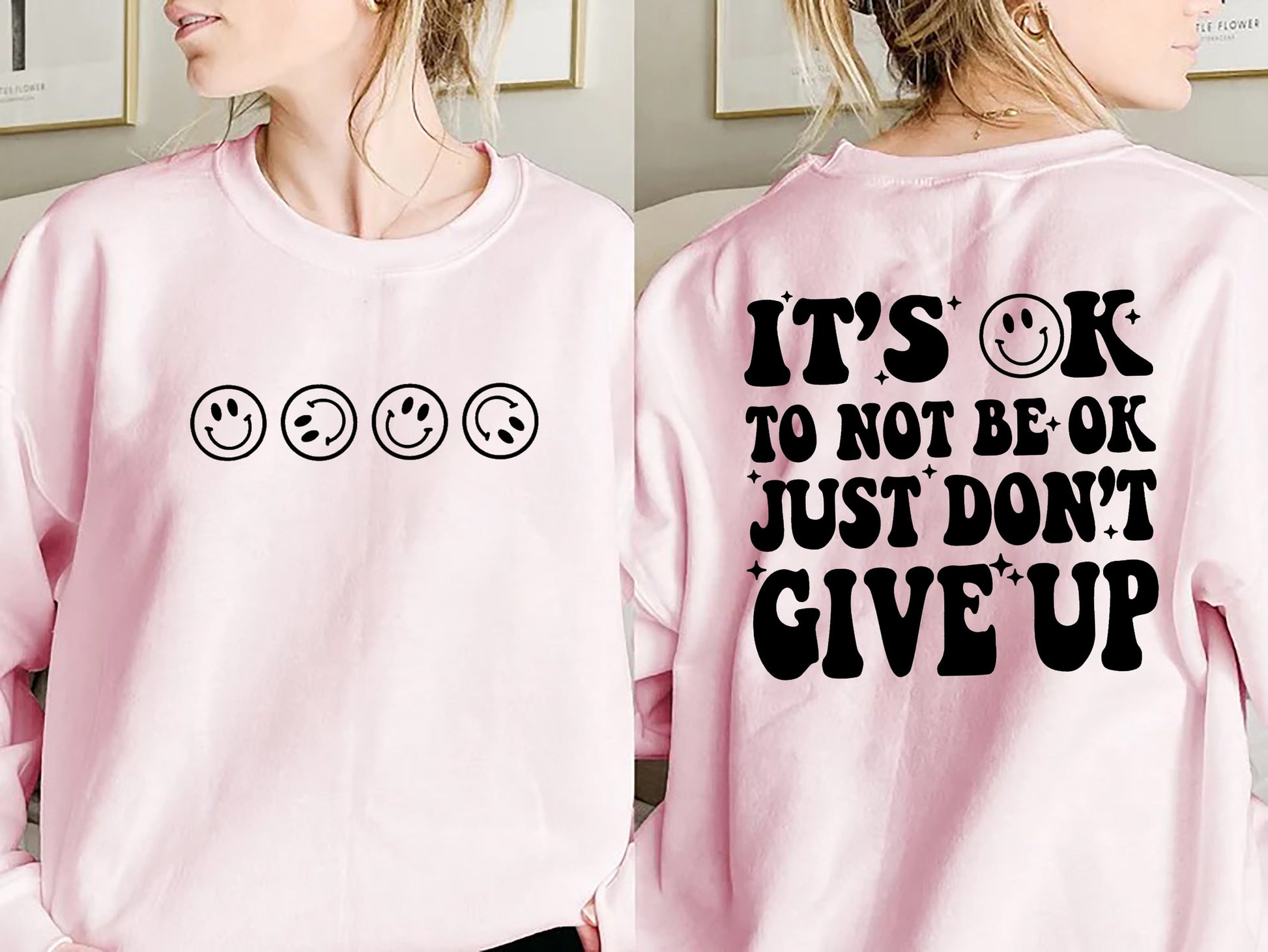 It's ok to not be ok Don't give up sweatshirt, Oversize crewnecks, Y2k Aesthetic, Trendy sweater, Mental health awareness, Preppy sweatshirt