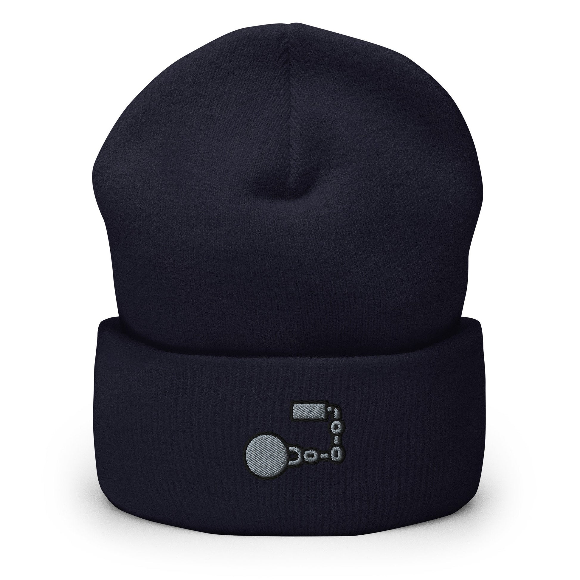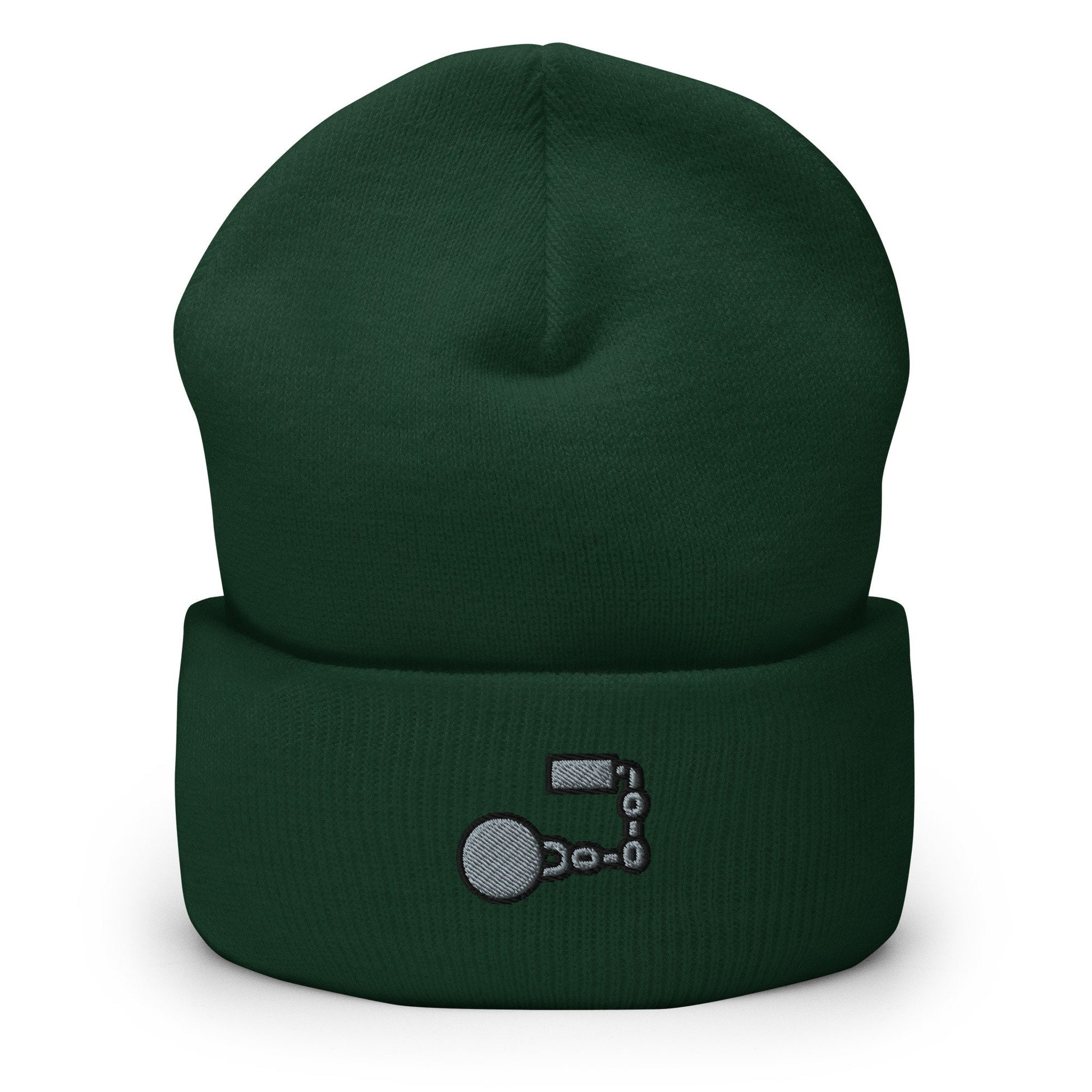 Jail Prison Ball and Chain Embroidered Beanie, Handmade Cuffed Knit Unisex Slouchy Adult Winter Hat Cap Gift