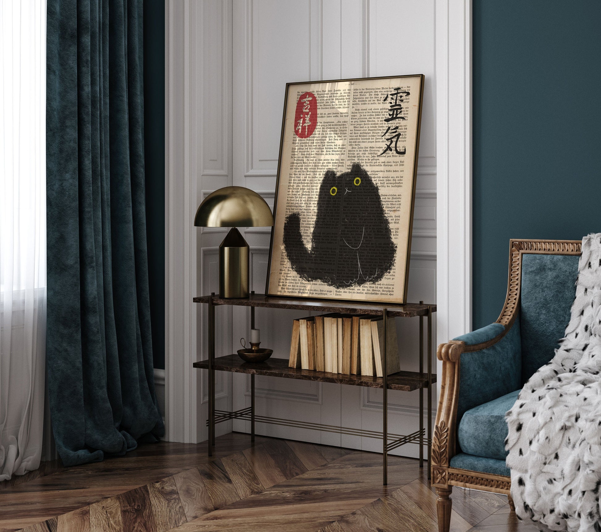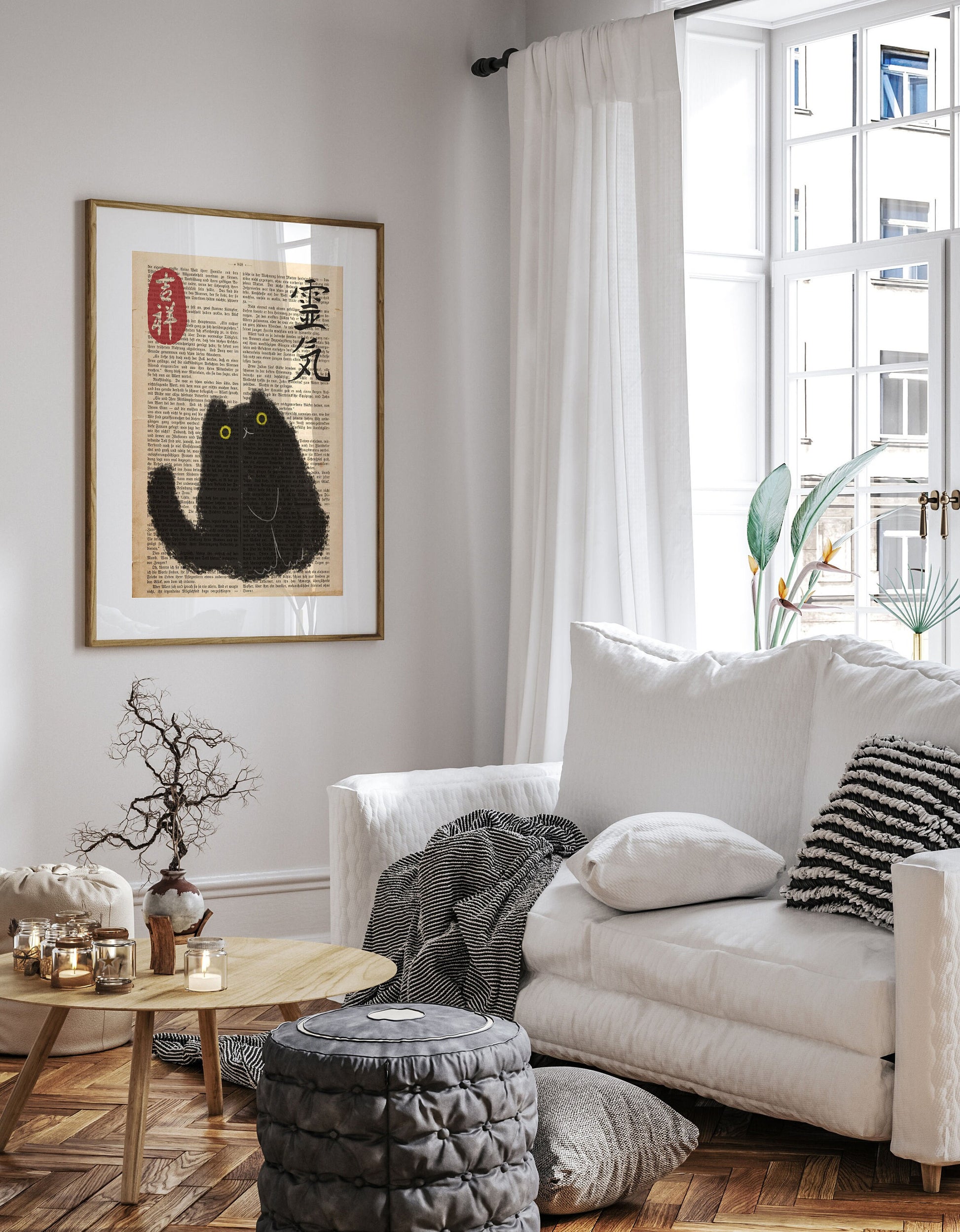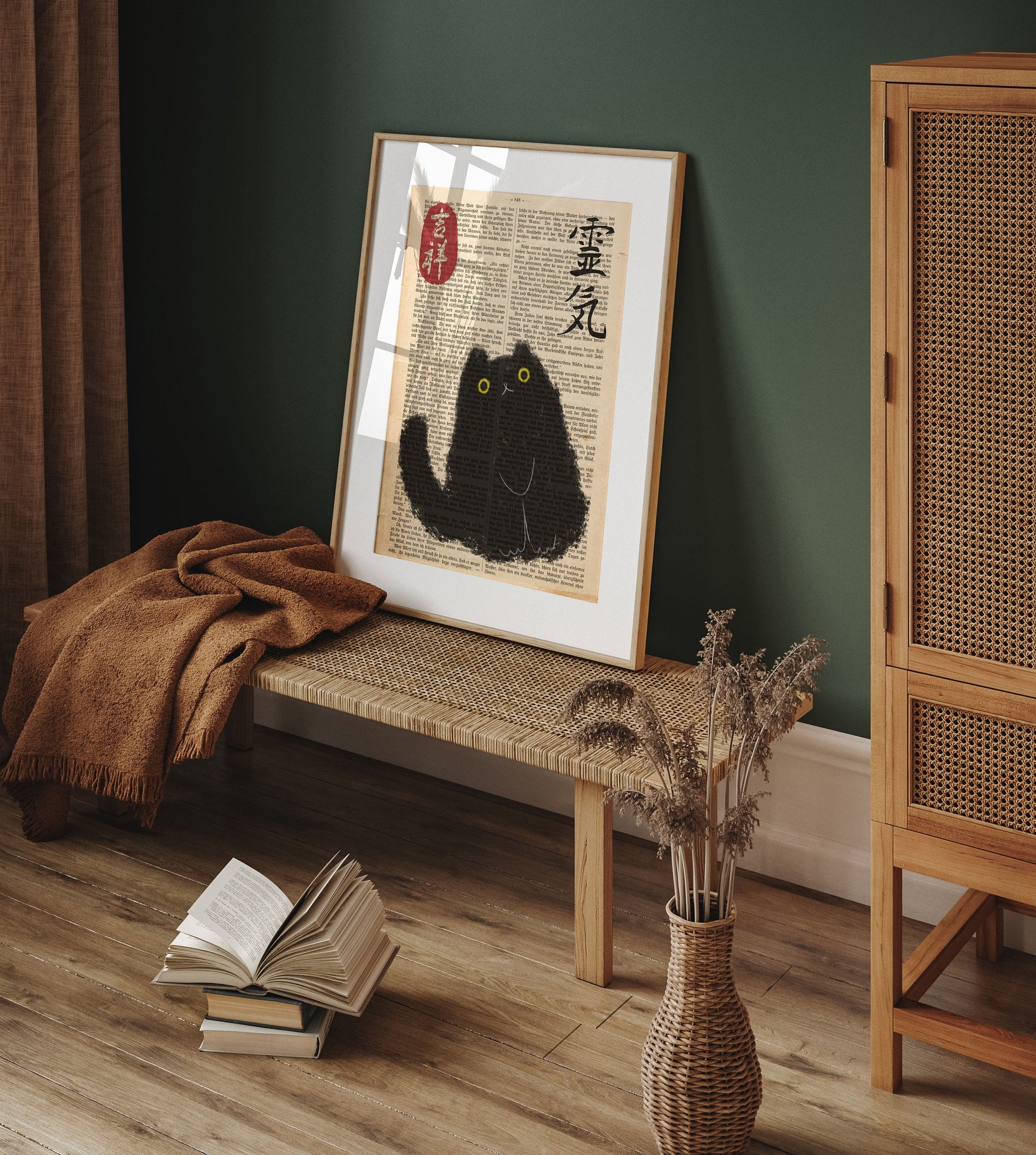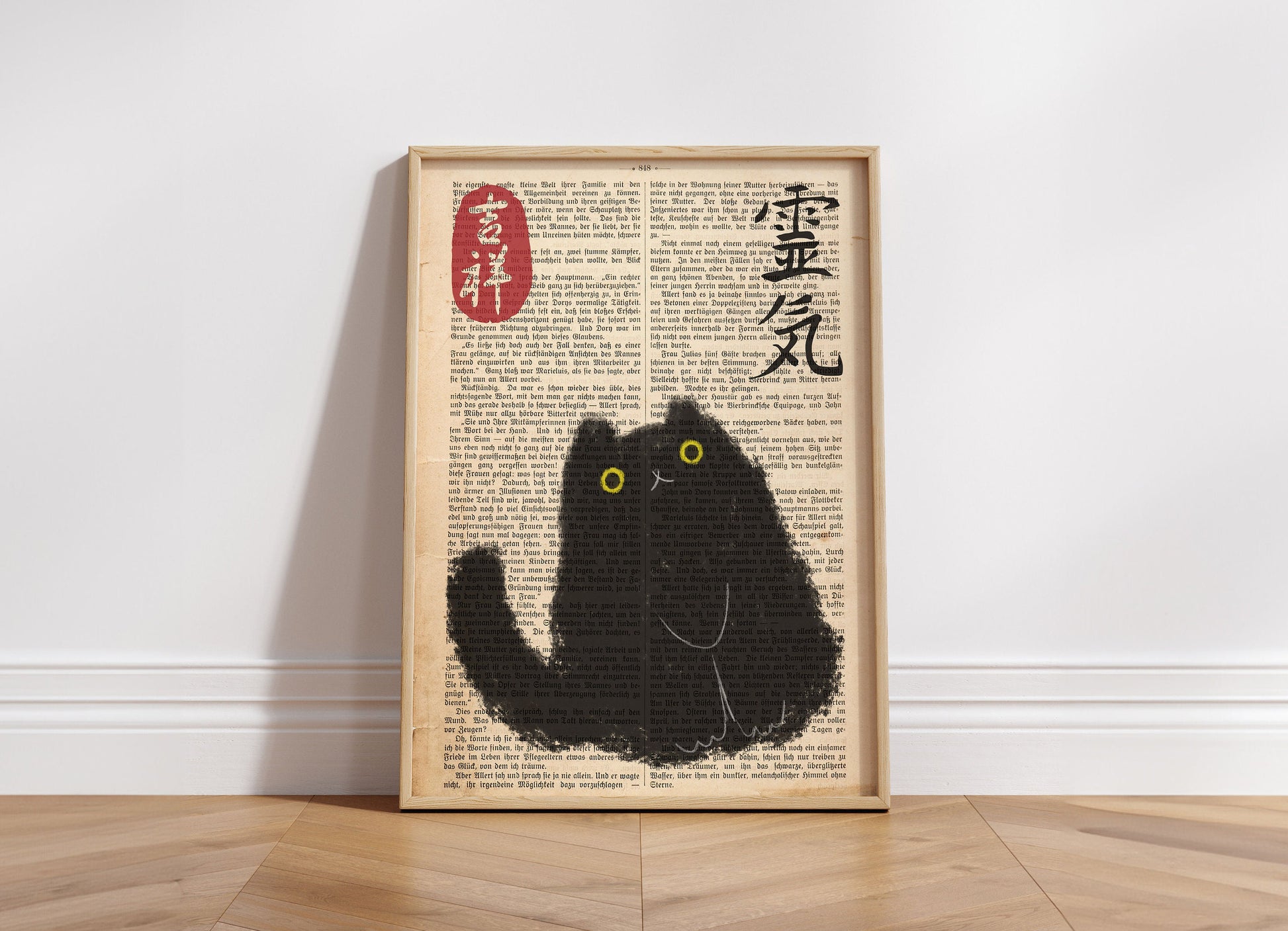 Japanese Cat Poster on vintage book page, Japanese cat art print, Cat Lovers Gift, Japanese VIntage Wall Art, Japanese woodblock print
