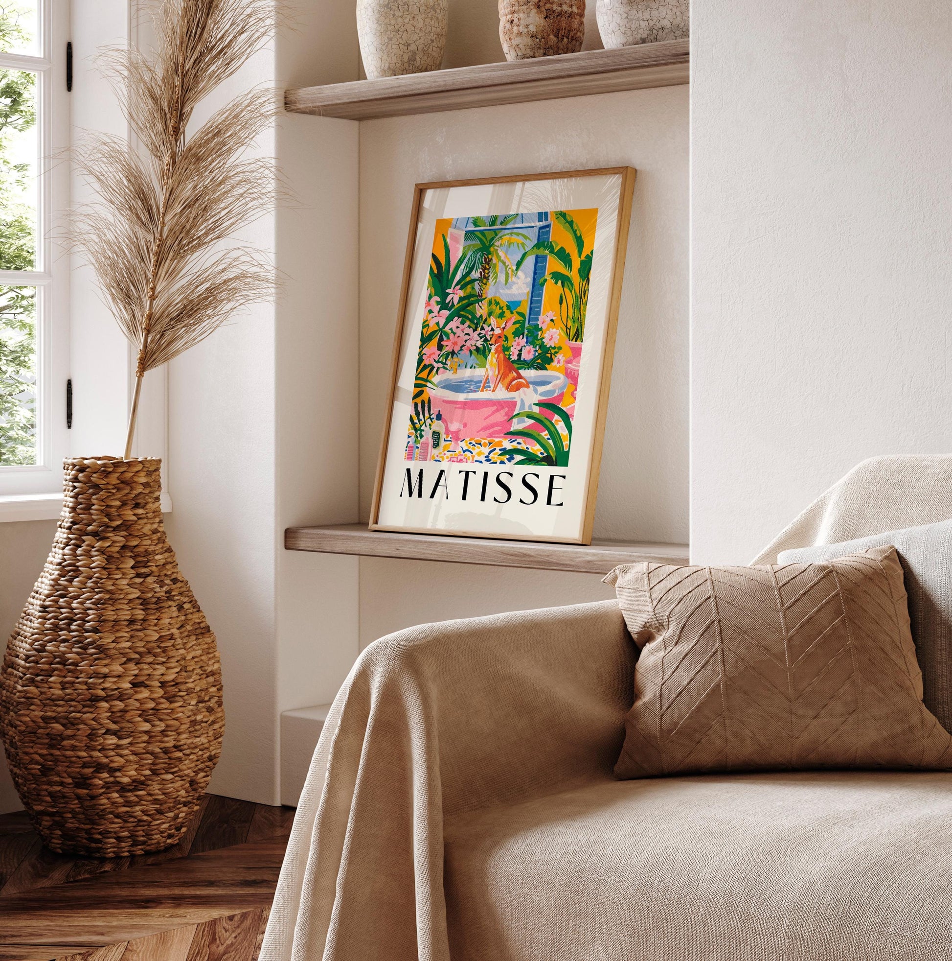 Kangaroo in bathtub art print, Maximalist decor, Henri Matisse art, Pink tropical bathroom decor, Animal art print