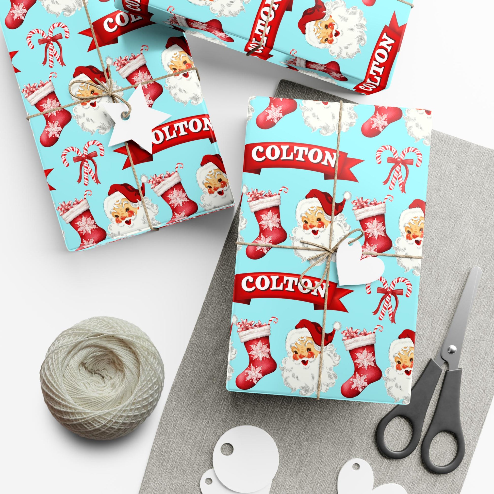 Kids Personalized Christmas Gift Wrapping - Childs Vintage Christmas -Boy Custom Gift Wrapping-Kids Name Gift Wrap -Childrens Gift Idea