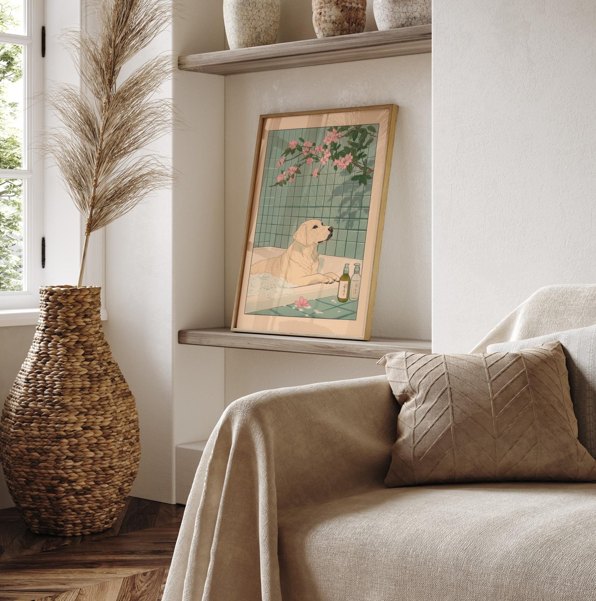 Labrador in Bathtub Art Print: Ukiyo-e Japanese Dog Decor