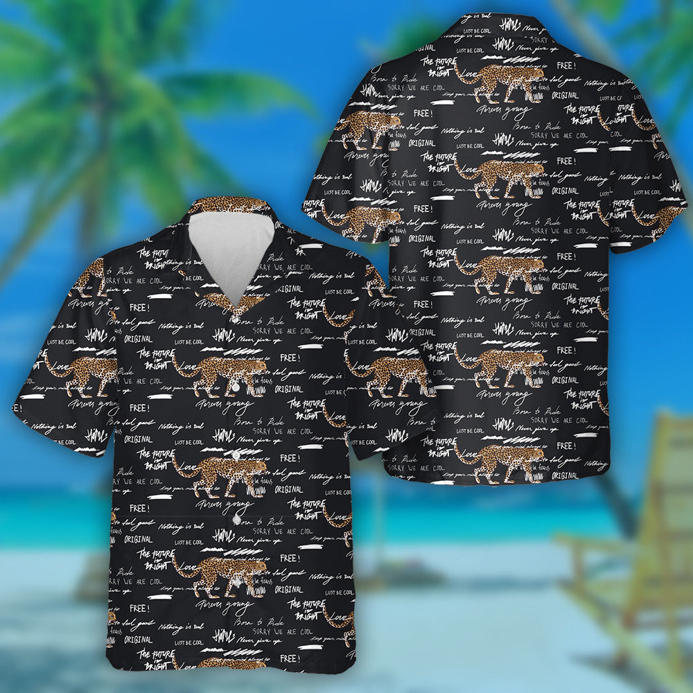Leopard And White Word On Black Background Hawaiian Shirt, Hawaiian Shirt Gift, Christmas Gift