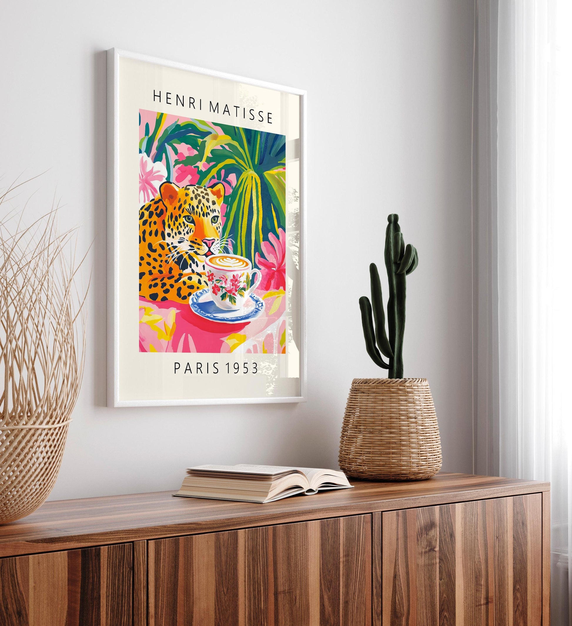 Leopard Drinking Coffee Art Print: Henri Matisse Style Kitchen Decor
