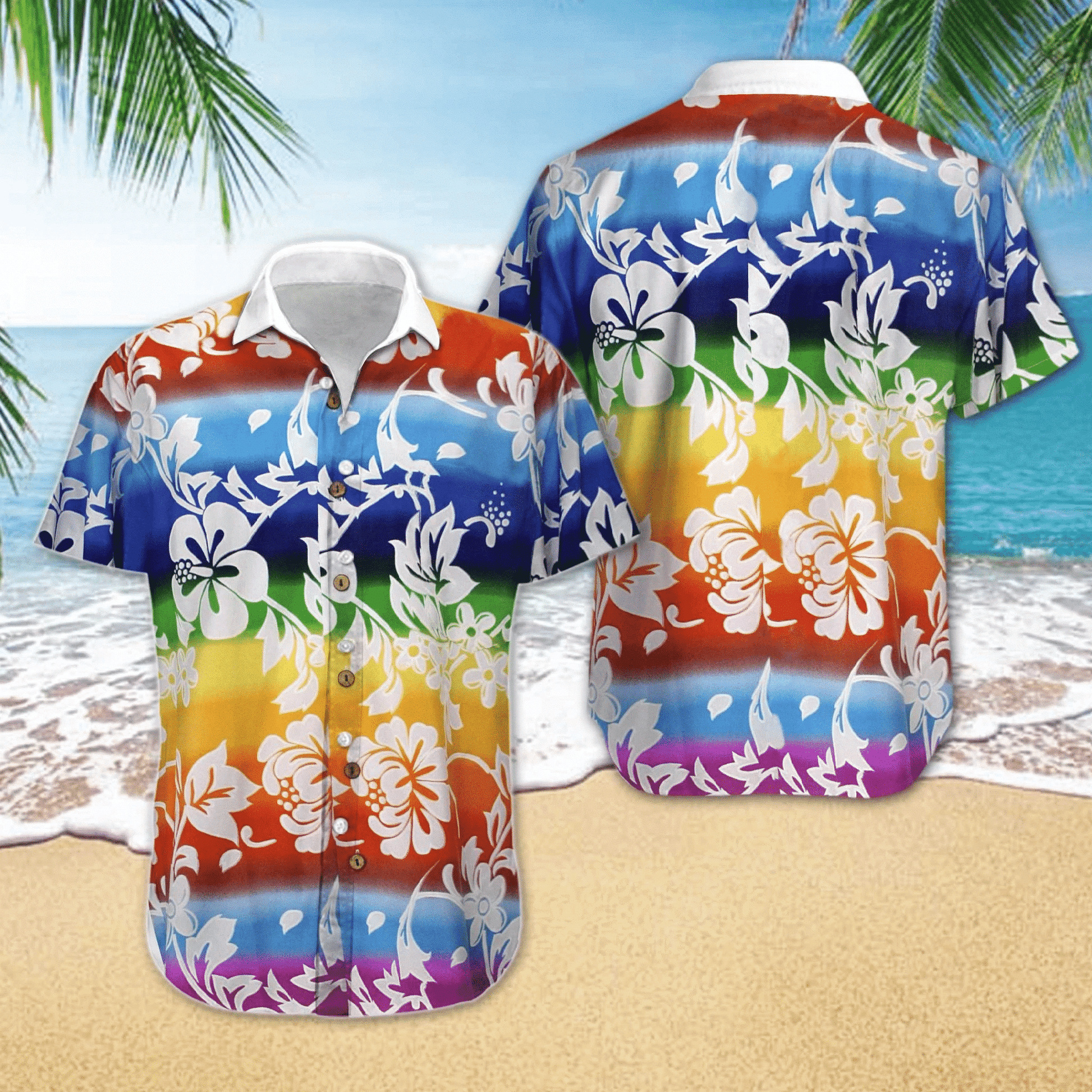 Lgbt White Flower Pattern Colorful Theme Hawaiian Shirt,Hawaiian Shirt Gift, Christmas Gift
