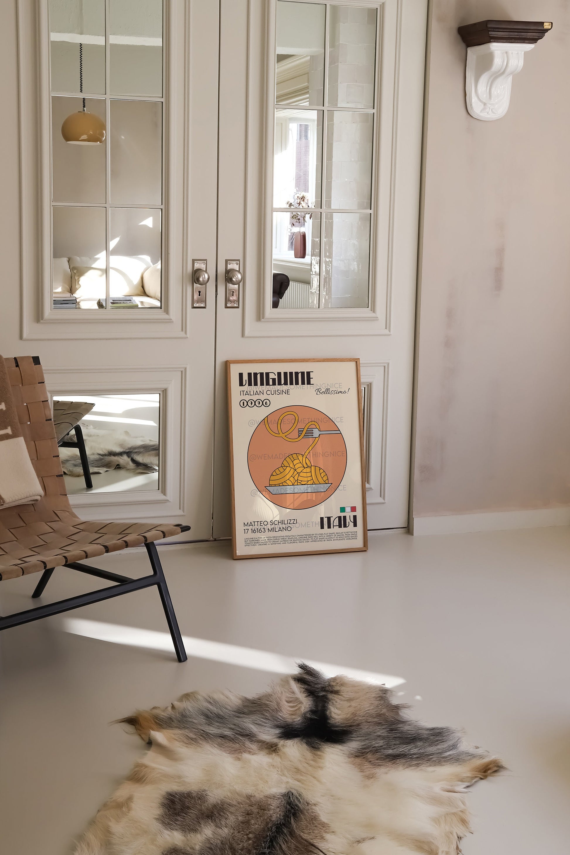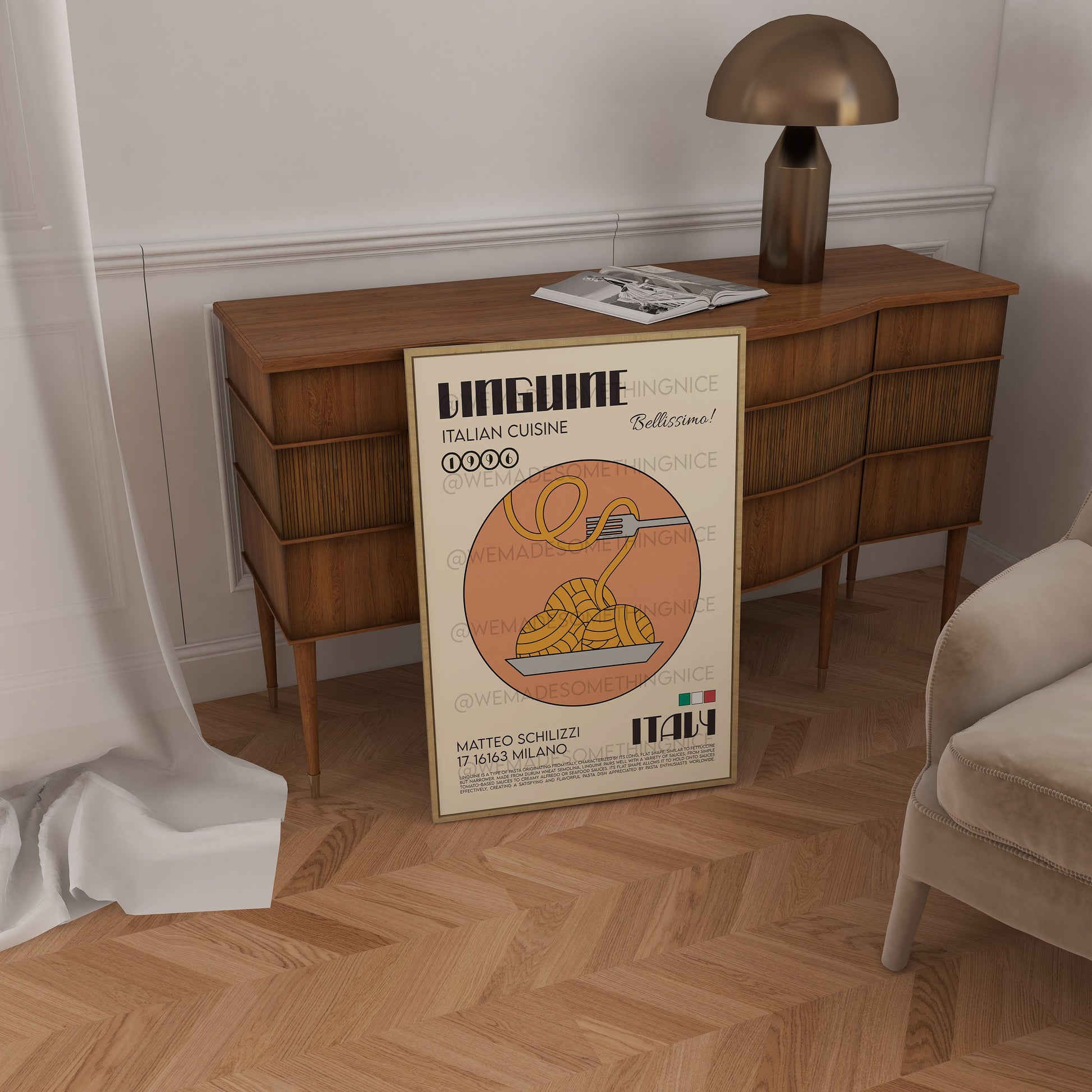 Linguine Poster, Pasta Poster, Kitchen Art, Kitchen wall Art, Italy Poster, Chef Print, Retro Wall Art