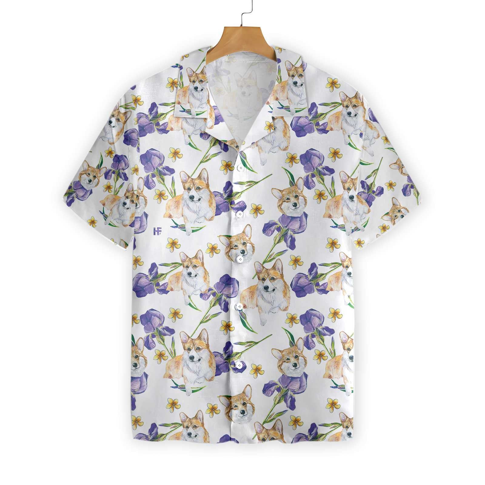 Little Corgi And Flowers Design Hawaiian Shirt, Hawaiian Shirt Gift, Christmas Gift