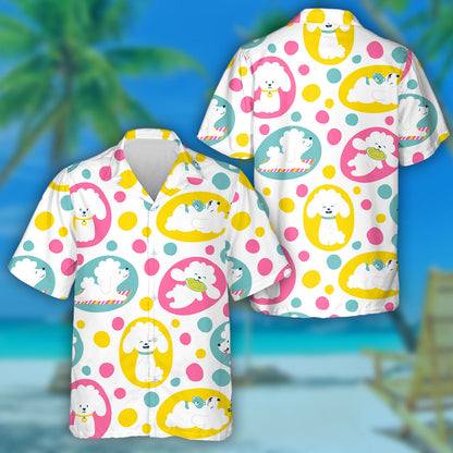Little Poodle Dogs A Daily Routine Colorful Background Hawaiian Shirt, Hawaiian Shirt Gift, Christmas Gift