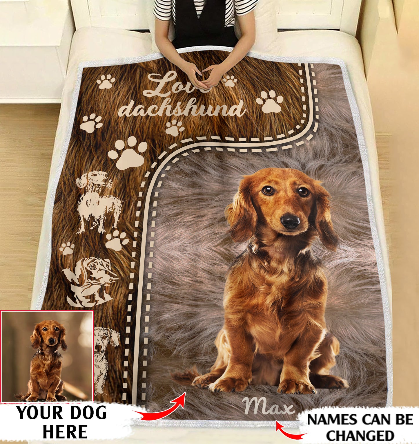 Love Dachshund personalized dog blanket customized Christmas family gift idea for dog lover