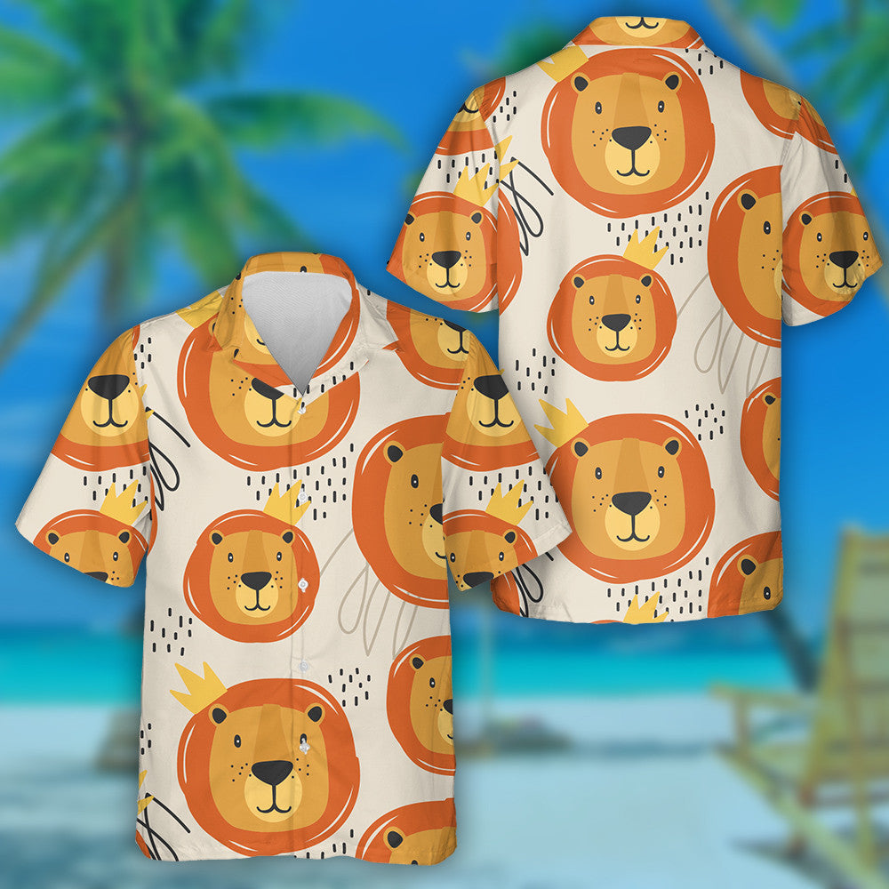 Lovely Lion In Crown On Pink Background Hawaiian Shirt, Hawaiian Shirt Gift, Christmas Gift