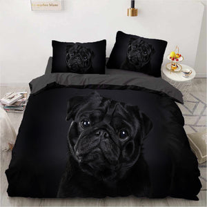 M Pug Black Dogs 3D All Over Printed Quilt Bed Bedroom Set Bedlinen 3D,Bedding Christmas Gift,Bedding Set Christmas