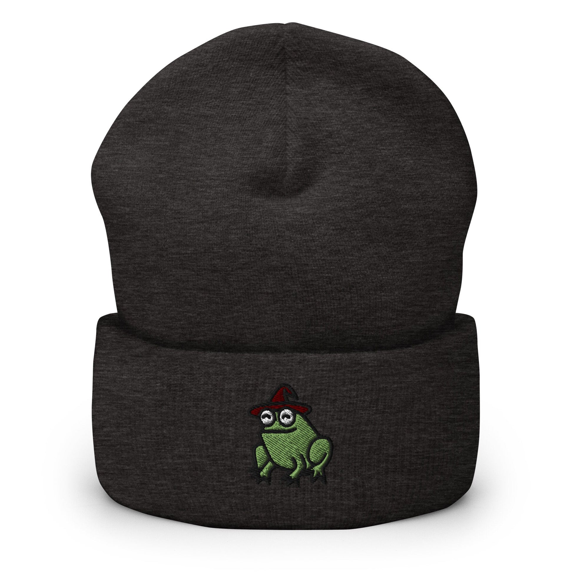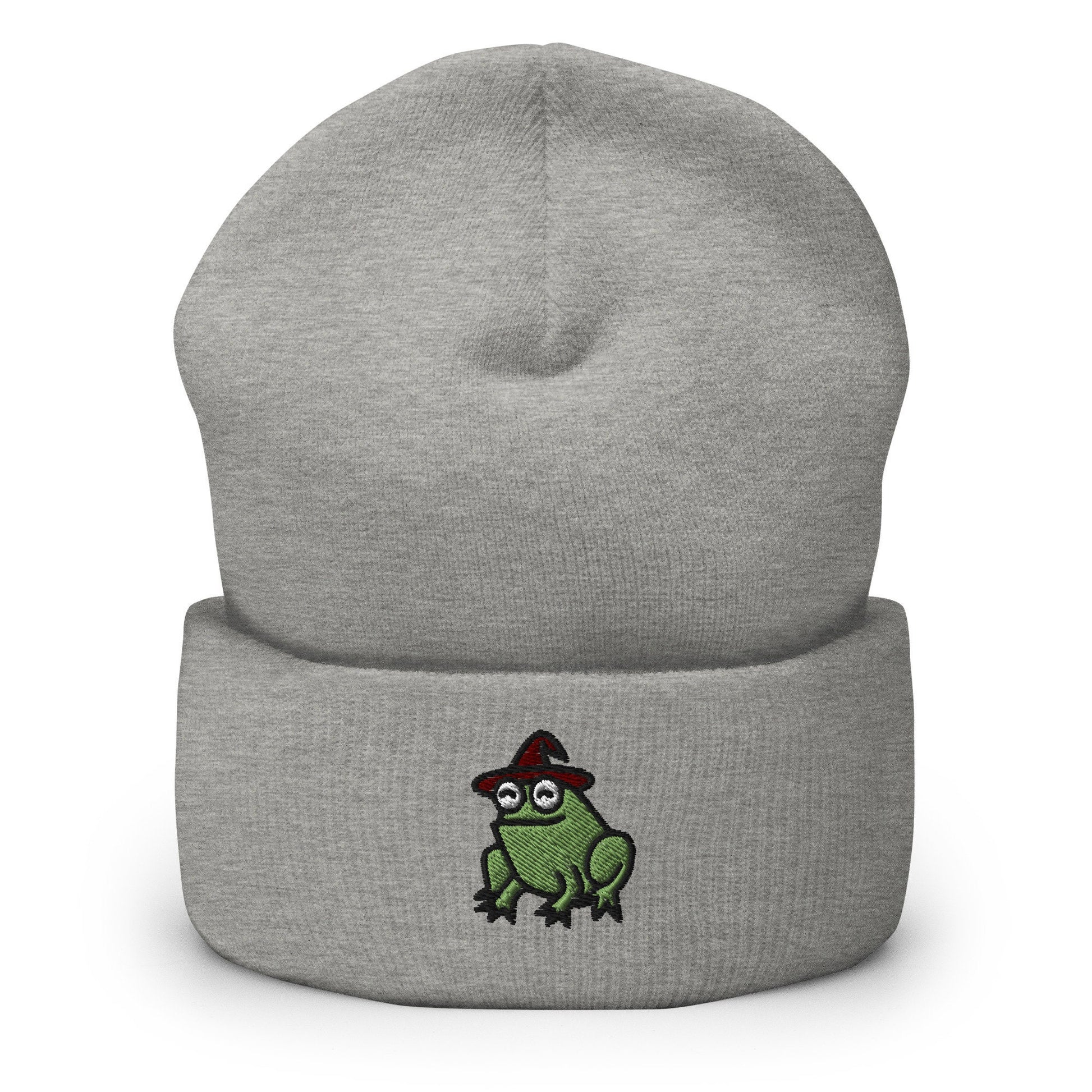 Magical Wizard Toad, Wizard Frog Embroidered Beanie, Handmade Cuffed Knit Unisex Slouchy Adult Winter Hat Cap Gift
