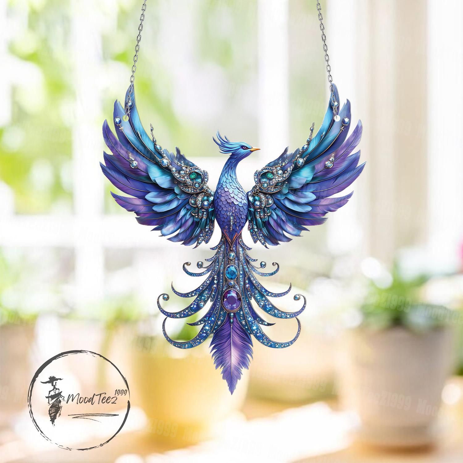 Majestic Phoenix Acrylic Window Hanging, Mystical Bird Suncatcher, Fantasy Boho Decor, Handmade Ornamental Gift, Celestial Home Accen