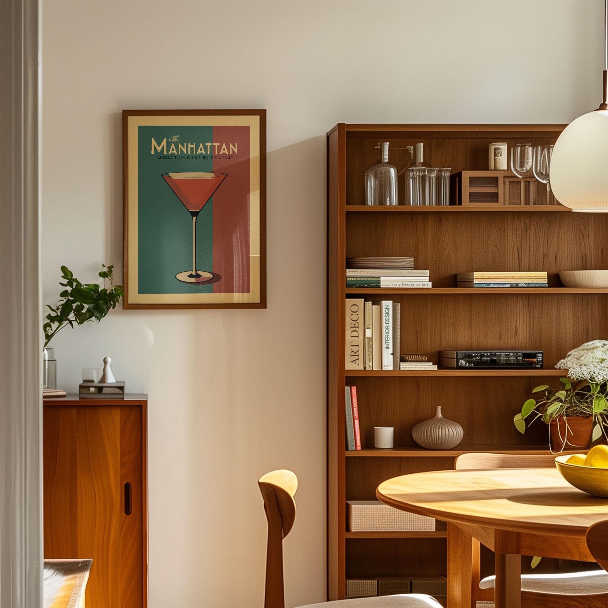 Manhattan Cocktail Print, Manhattan Cocktail Poster, Bar Wall Art, Classic Bar Cart Art Prints, Retro Cocktail Print, Bar Cart Accessories