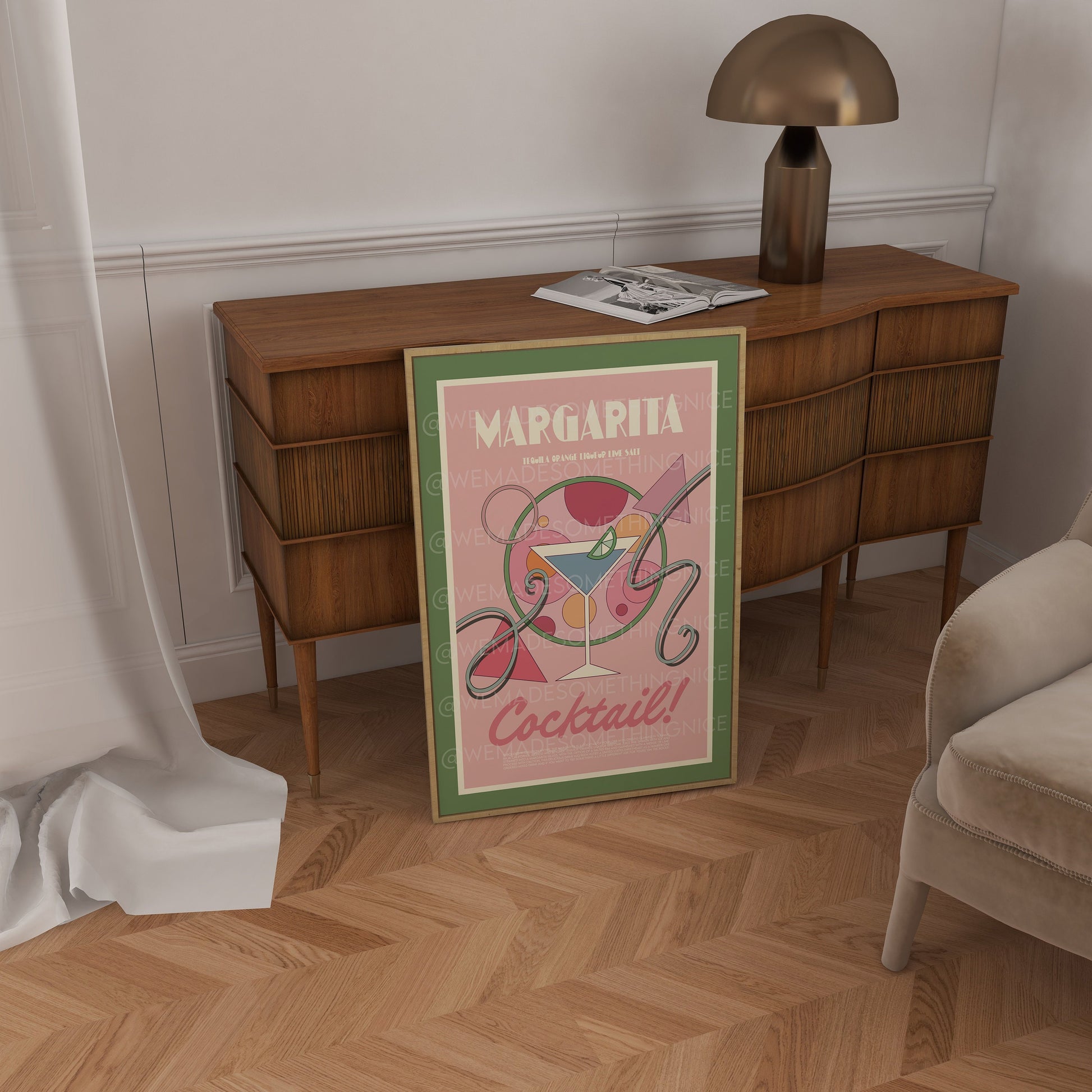 Margarita Cocktail Poster, Food Print, Modern Kitchen Decor, Bar art, Tequila, Gin and Tonic, Exhibition Poster, Retro Wall Art, Pink