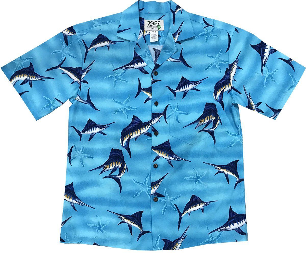 Marlin Madness Blue Hawaiian Aloha Shirt Hawaiian Shorts Beach Short Sleeve, Hawaiian Shirt Gift, Christmas Gift