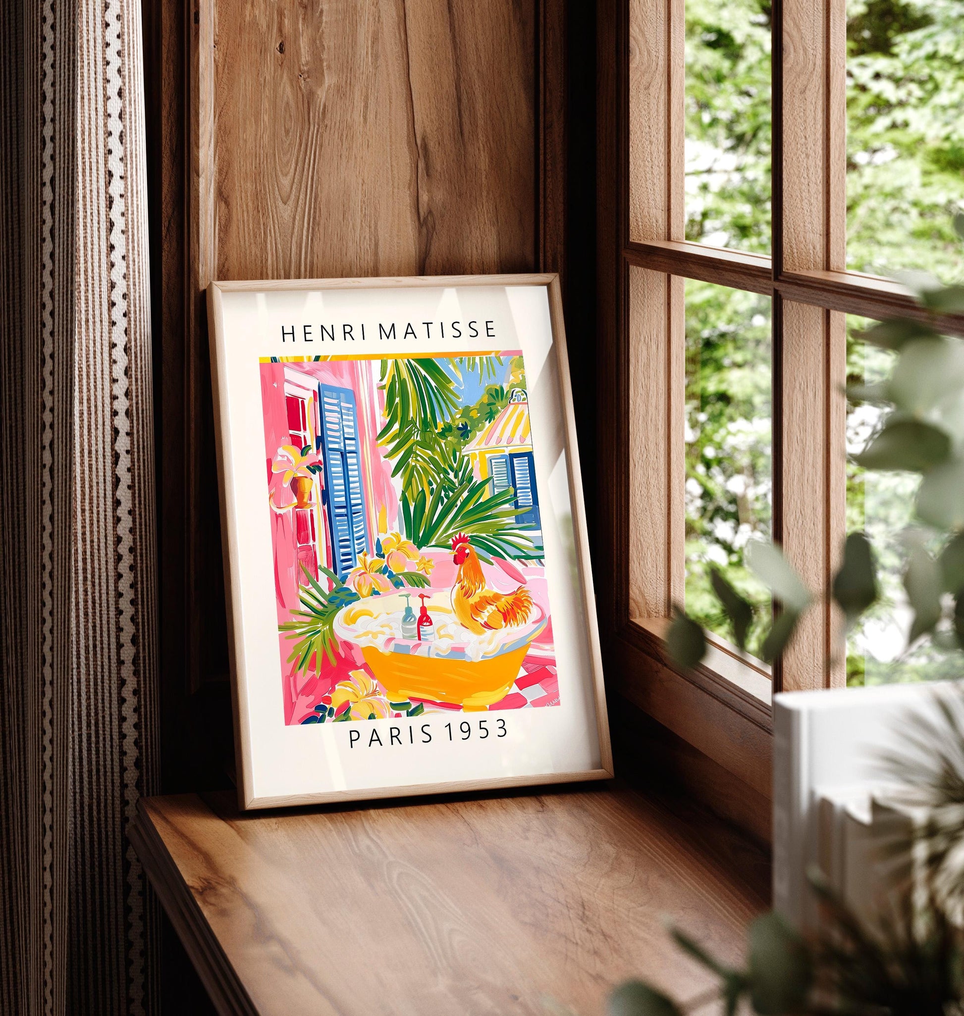 Matisse Style Chicken Art Print: Funny Bathroom Wall Decor
