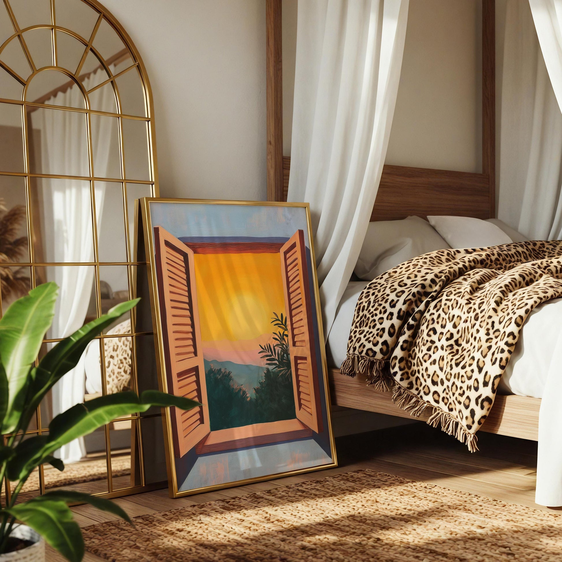Matisse Style Window View Print: Fauvism Mountain Sunset Art