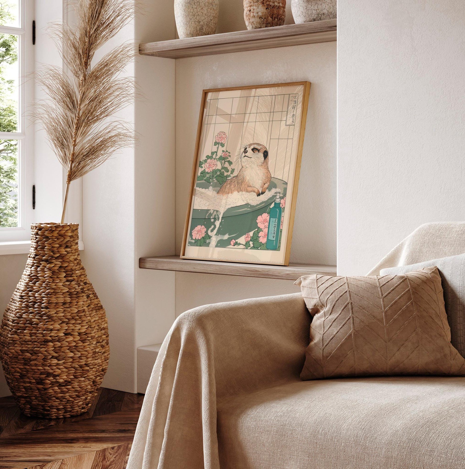 Meerkat in Bathtub Print: Funny Ukiyo-e Japanese Bathroom Art