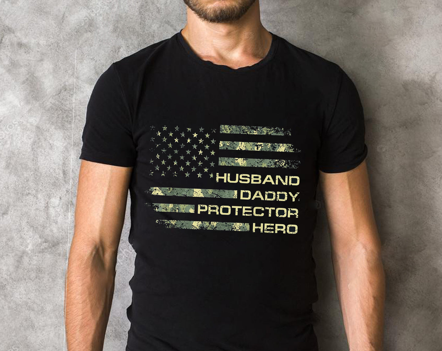 Mens Husband Daddy Protector Hero Shirt Fathers Day Flag Gift Tee T-Shirt